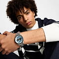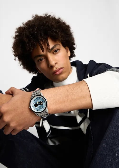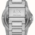 Мужские наручные часы с минеральным стекломМинеральное стеклоМинеральное стекло представляет собой искусственно выращенный минерал кварца. Такое стекло отличается особой устойчивостью к повреждениям и царапинам. Уступает по некоторым качествам сапфировому стеклу. Armani Exchange Banks AX1736, кварцевый механизм с высокой точностью. Класс водозащиты: 50 метров, позволит защитить корпус от случайных брызг или капель дождя. Корпус часов изготовлен из стали. Модель имеет серый циферблат с эффектом луны, серебряные часовую, минутную и секундную стрелки. Циферблат оснащен серебряными индексами в виде жезлов, а также дополнительными циферблатами фаз Луны, дня недели и даты. Стальной браслет на раскладной застёжкеРаскладная застёжкаТакой тип застёжки используется только на браслетах из металла. Она никогда не раскрывается полностью, происходит разделение на 2 и более частей. Раскладывающая застёжка снизит вероятность потери часов к минимуму..