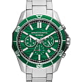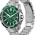 Мужские наручные часы хронографХронографФункция позволяет измерять отрезки времени с особой точностью: часы, минуты, секунды. Верным признаком хронографа является наличие на циферблате 3 дополнительных окошек-счётчиков. с минеральным стекломМинеральное стеклоМинеральное стекло представляет собой искусственно выращенный минерал кварца. Такое стекло отличается особой устойчивостью к повреждениям и царапинам. Уступает по некоторым качествам сапфировому стеклу. Armani Exchange Dante AX1957, кварцевый механизм с высокой точностью. Класс водозащиты: 100 метров, позволит плавать, нырять и заниматься другими водными видами спорта. Корпус часов изготовлен из нержавеющей стали. Стальной браслет на раскладной застёжкеРаскладная застёжкаТакой тип застёжки используется только на браслетах из металла. Она никогда не раскрывается полностью, происходит разделение на 2 и более частей. Раскладывающая застёжка снизит вероятность потери часов к минимуму.. Вращающийся безельБезельВнешний ободок, закрепляющий стекло. В спортивных часах так называется поворотное кольцо с делениями на циферблате, выполняет роль таймера – замеряет отрезки времени на шкале. Неподвижный безель – элемент декора. Однонаправленно вращающийся безель на дайверских часах позволяет фиксировать моменты погружения и выныривания на поверхность.. Текстурированный циферблат с метками в виде штрихов.