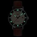 Мужские механические часы с автоподзаводом Bauhaus — это аксессуар с винтажным пилотским стилем. Корпус диаметром 41 мм и толщиной 12 мм выполнен из нержавеющей стали. Циферблат бежевого цвета оформлен арабскими цифрами и стрелками. Окошко даты расположено в положении 3 часов. Стрелки и метки с люминесцентным покрытиемЛюминесцентное покрытиеПозволяет считывать показания времени в темноте. Производители наносят на стрелки, часовые индексы, безель или поверхность циферблата светонакопительный состав, дающий холодное свечение., обеспечивающим хорошую читаемость в темноте. Циферблат защищён прочным минеральным стекломМинеральное стеклоМинеральное стекло представляет собой искусственно выращенный минерал кварца. Такое стекло отличается особой устойчивостью к повреждениям и царапинам. Уступает по некоторым качествам сапфировому стеклу. K1. Часы оснащены коричневым кожаным ремешком на классической пряжке. Водонепроницаемость 50 м позволяет использовать часы в повседневных условиях. Идеальный выбор для тех, кто ценит немецкое качество и ретро-стиль.