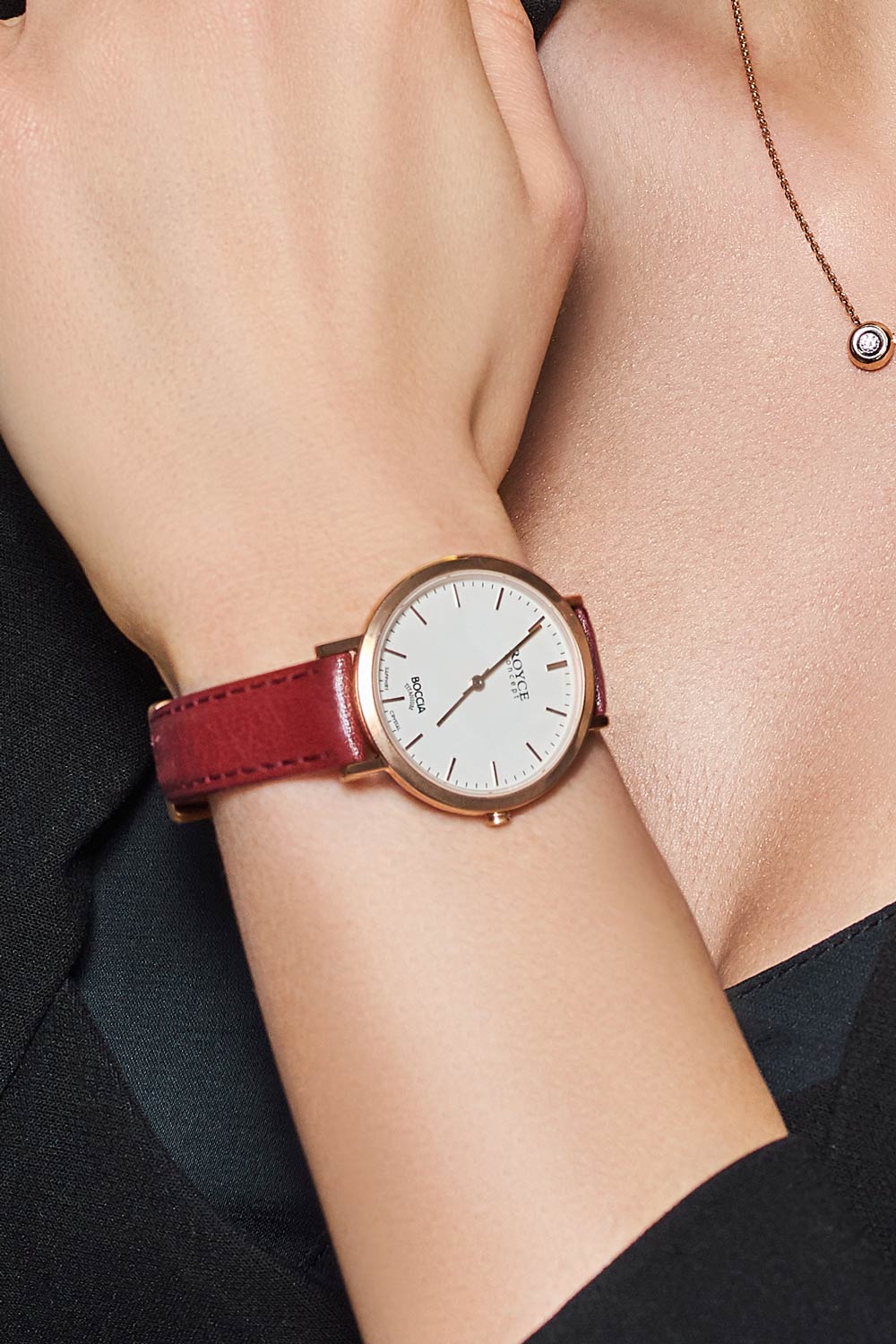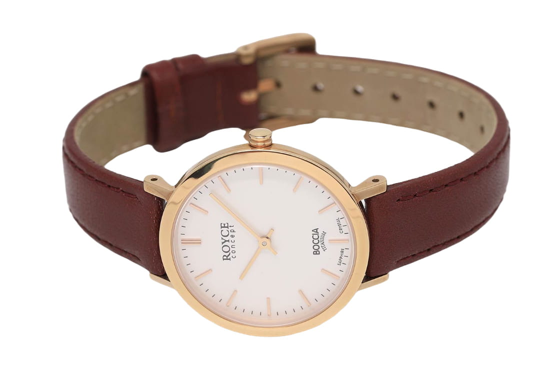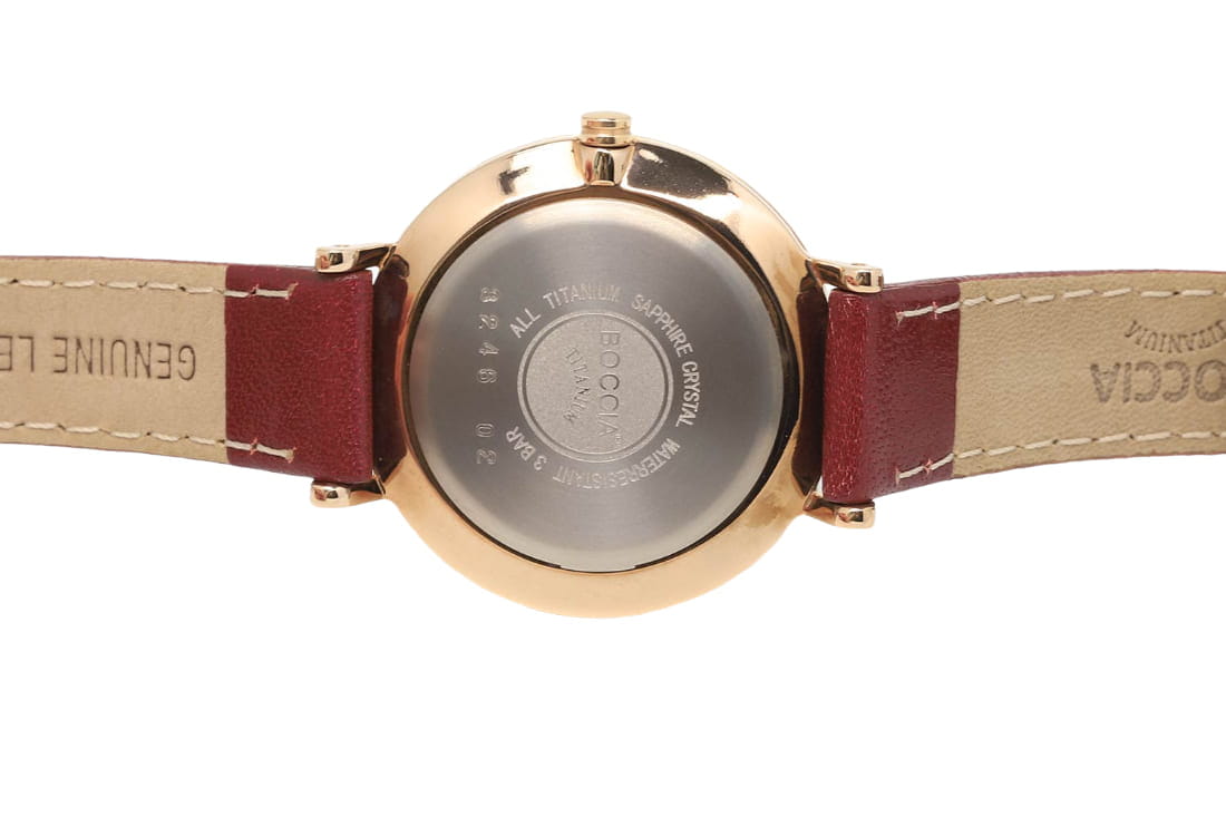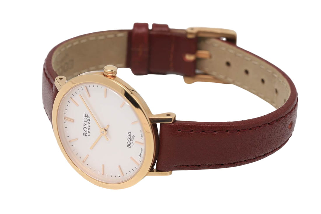 Женские немецкие титановые часы Boccia Titanium 3246-02, кварцевый механизм с высокой точностью. Сапфировое стекло устойчивое к появлению царапин, обладающее высокой прозрачностью. Класс водозащиты: 50 метров, позволит защитить корпус от случайных брызг или капель дождя. Корпус часов изготовлен из титана, золотистого цвета.