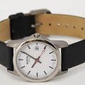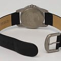 Корпус часов, выполненный из титана, обеспечивает лёгкость и прочность конструкции, а кожаный ремешок на стандартной застёжке придаёт часам стильный и элегантный вид.