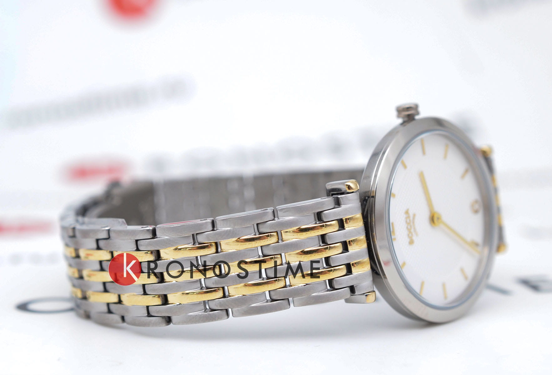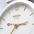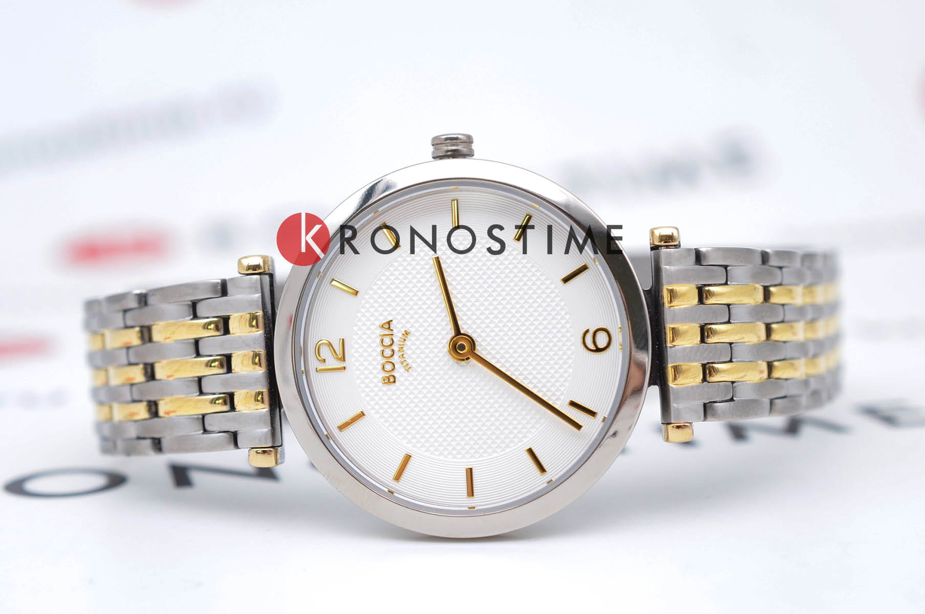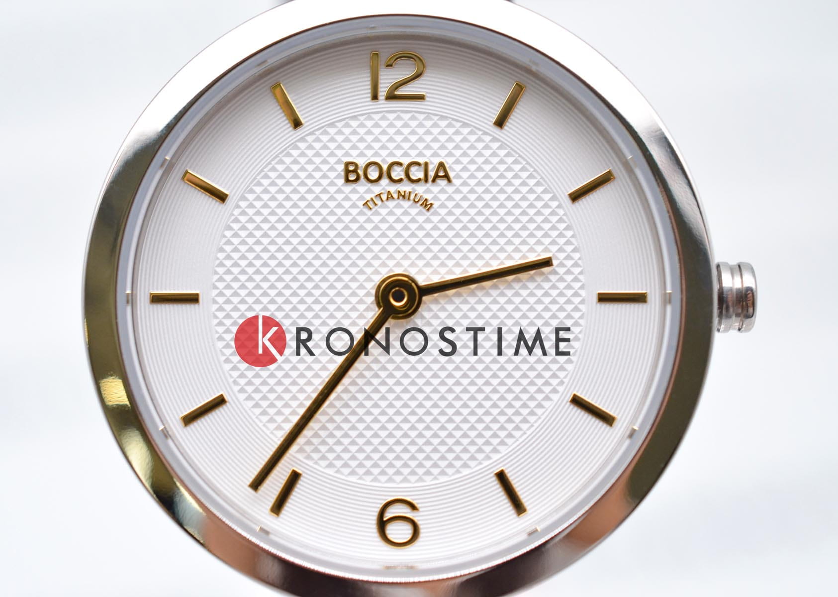 Часы Boccia 3362-03 — это утонченный аксессуар для женщин, сочетающий в себе элегантность и надежность. Эти кварцевые часы оснащены механизмом Miyota GL22, который обеспечивает точность хода. Серебристый циферблат придает модели классическую изысканность, гармонично сочетаясь с круглым корпусом из гипоаллергенного титана. Диаметр корпуса составляет 30 мм, что делает часы аккуратными и элегантными, идеально подходящими для женской руки. Стальной браслет с частичным PVDPVDУльтратонкое покрытие наносится в технике вакуумного напыления, сочетает в себе нитрид титана особой прочности со слоем золота или оксида хрома. Несёт в себе декоративную или защитную функцию. покрытием цвета желтого золота с раскладной застёжкойРаскладная застёжкаТакой тип застёжки используется только на браслетах из металла. Она никогда не раскрывается полностью, происходит разделение на 2 и более частей. Раскладывающая застёжка снизит вероятность потери часов к минимуму. добавляет комфорта и завершает стильный образ. Часы защищены прочным минеральным стекломМинеральное стеклоМинеральное стекло представляет собой искусственно выращенный минерал кварца. Такое стекло отличается особой устойчивостью к повреждениям и царапинам. Уступает по некоторым качествам сапфировому стеклу., устойчивым к мелким механическим повреждениям, что обеспечивает их долговечность и сохранение презентабельного вида. Водостойкость на уровне WR 50 позволяет не беспокоиться о попадании воды при мытье рук или в дождливую погоду. долговечность.