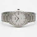 Часы Boccia 3669-03 представляют собой идеальное сочетание стиля и функциональности для современного мужчины. Оснащенные надежным кварцевым механизмом Miyota GR12, они обеспечивают высокую точность хода. На светло-серебристом циферблате с метками времени расположены центральные часовая, минутная и секундная стрелки, а также апертура даты в положении 3 часов, что делает использование этих часов еще более удобным. Корпус часов имеет круглый дизайн и выполнен из суперлегкого титана, что обеспечивает комфорт и легкость при ношении. Диаметр корпуса составляет 39 мм, что делает часы универсальными и подходящими для любого запястья. Стрелки часов покрыты люминесцентным покрытиемЛюминесцентное покрытиеПозволяет считывать показания времени в темноте. Производители наносят на стрелки, часовые индексы, безель или поверхность циферблата светонакопительный состав, дающий холодное свечение., которое мягко светится в темноте, освещая путь даже в самых загадочных сумерках. Титановый браслет с раскладной застёжкойРаскладная застёжкаТакой тип застёжки используется только на браслетах из металла. Она никогда не раскрывается полностью, происходит разделение на 2 и более частей. Раскладывающая застёжка снизит вероятность потери часов к минимуму. добавляет элегантности и обеспечивает надежную фиксацию на руке. Часы защищены прочным минеральным стекломМинеральное стеклоМинеральное стекло представляет собой искусственно выращенный минерал кварца. Такое стекло отличается особой устойчивостью к повреждениям и царапинам. Уступает по некоторым качествам сапфировому стеклу., устойчивым к мелким механическим повреждениям, что сохраняет их безупречный вид при повседневном использовании. Водостойкость модели составляет WR 100, что позволяет использовать их при плавании без погружения, не беспокоясь о сохранности механизма.