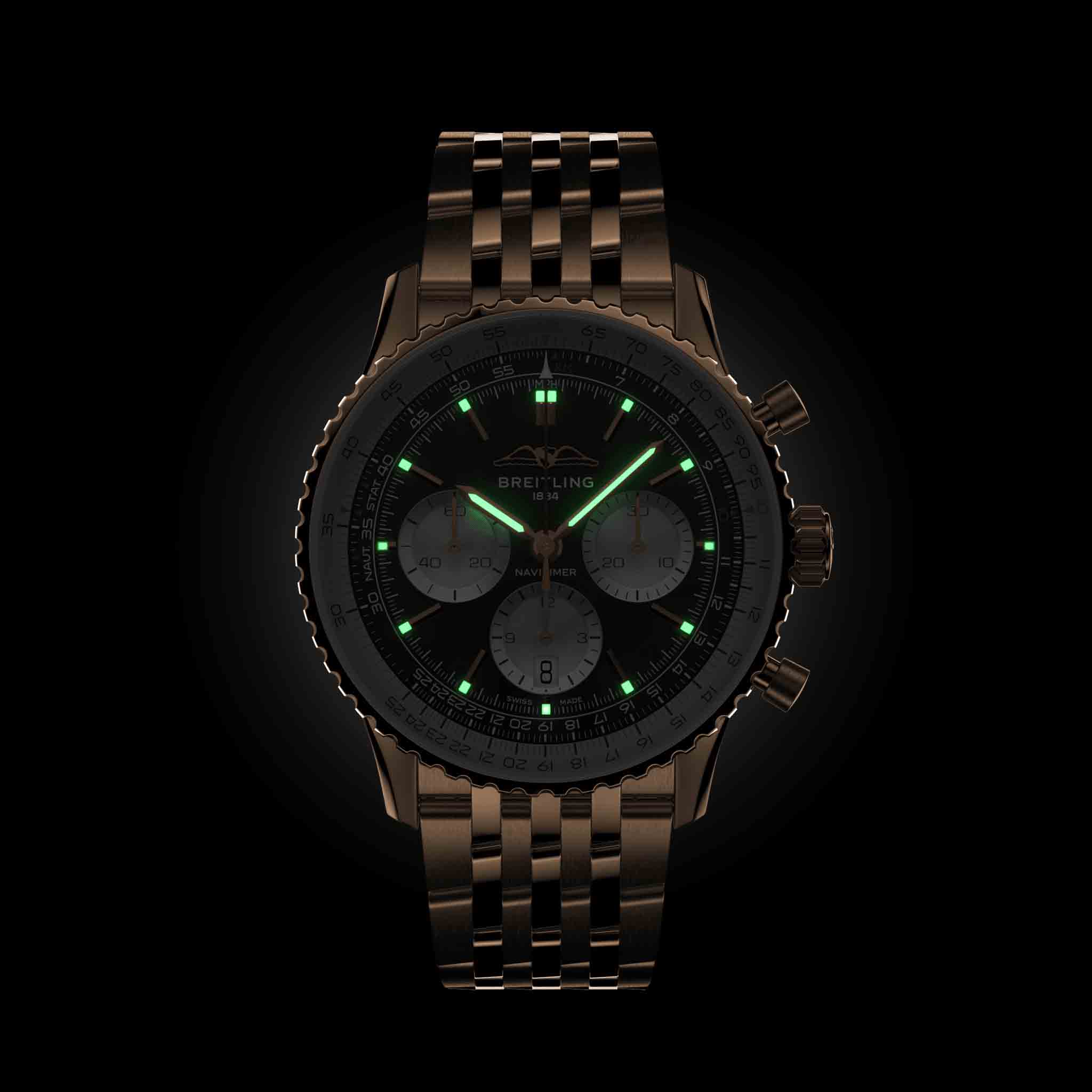 Мужские швейцарские часы-хронографХронографФункция позволяет измерять отрезки времени с особой точностью: часы, минуты, секунды. Верным признаком хронографа является наличие на циферблате 3 дополнительных окошек-счётчиков. с секундомеромСекундомерСекундоме́р — прибор, способный измерять интервалы времени с точностью до долей секунды. Breitling Navitimer B01 Chronograph 43 RB0138211B1R1, механический механизм (автоматический калибр) с высокой точностью. Сапфировое стеклоСапфировое стеклоПрочный и надёжный материал из кристалла сапфира синтетического происхождения, характеризующийся особой твёрдостью и устойчивостью к царапинам и повреждениям. с антибликовым покрытием устойчивое к появлению царапин, обладающее высокой прозрачностью. Класс водозащиты: 30 метров, позволит защитить корпус от случайных брызг или капель дождя. Корпус часов изготовлен из стали. Чередующиеся полированные и матовые металлические элементы создают блестящую, но в то же время сдержанную отделку. Стальной браслет с застёжкой-бабочкой с кнопкамиЗастёжка "бабочка"Такой вид застёжки дополняется предохранителями, помогающими избежать случайного раскрытия браслета. Обладают изящным исполнением. . С момента своего дебюта 70 лет назад icon от Breitling претерпел множество модификаций, но этот новый Navitimer отражает его самые классические функции, дополняя их современными усовершенствованиями. Сплющенная логарифмическая линейка и выпуклый кристалл создают иллюзию более изящного профиля. Шкала тахиметраТахиметрРазмеченная шкала, располагается на ободке или безеле часов. Тахиметр позволяет рассчитать скорость на определённом участке пути, расстояние измеряется в километрах или милях. на циферблате. Часы имеют сертификат COSCСертификат COSCОфициальный сертификат, подтверждающий то, что часы ходят с особо высокой точностью. Для получения документа часы подвергаются тестовым испытаниям, разработанным швейцарским институтом тестирования хронометров COSC. Допустимая норма для механических часов -4/+6 секунд в день, для кварцевых моделей +/- 0,07 секунд в день.. Окошко даты находится в положении 6 часов. Стрелки и метки с люминесцентным покрытиемЛюминесцентное покрытиеПозволяет считывать показания времени в темноте. Производители наносят на стрелки, часовые индексы, безель или поверхность циферблата светонакопительный состав, дающий холодное свечение.. И если есть одно обновление, которое наверняка вызовет ностальгию, так это возвращение крыльев AOPA в исходное положение на 12 часов. Вот уже 70 лет оригинальные часы Breitling pilot в равной степени нравятся как авиаторам, так и ценителям вкуса. Это самые культовые часы Breitling, которые носят астронавты в космосе и крупнейшие звезды на земле, и одни из самых узнаваемых часов всех времен.
