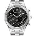 Мужские кварцевые часы-хронографХронографФункция позволяет измерять отрезки времени с особой точностью: часы, минуты, секунды. Верным признаком хронографа является наличие на циферблате 3 дополнительных окошек-счётчиков. Bulova Classic 96B410 – отражающий идеальное сочетание современного дизайна, надёжности и функциональности. Элегантный облик станет превосходным завершением образа, наделив его индивидуальным характером. Корпус из нержавеющей стали, диаметром 44 мм идеально сбалансирован и элегантен. Минеральное стеклоМинеральное стеклоМинеральное стекло представляет собой искусственно выращенный минерал кварца. Такое стекло отличается особой устойчивостью к повреждениям и царапинам. Уступает по некоторым качествам сапфировому стеклу. защищает циферблат от царапин и устойчивое к мелким механическим повреждениям. Шкала тахиметраТахиметрРазмеченная шкала, располагается на ободке или безеле часов. Тахиметр позволяет рассчитать скорость на определённом участке пути, расстояние измеряется в километрах или милях. на циферблате. Стальной браслет на раскладной застёжкеРаскладная застёжкаТакой тип застёжки используется только на браслетах из металла. Она никогда не раскрывается полностью, происходит разделение на 2 и более частей. Раскладывающая застёжка снизит вероятность потери часов к минимуму. обеспечивает комфортное ношение. Стрелки и метки с люминесцентным покрытиемЛюминесцентное покрытиеПозволяет считывать показания времени в темноте. Производители наносят на стрелки, часовые индексы, безель или поверхность циферблата светонакопительный состав, дающий холодное свечение. позволяющие легко определять время даже в темноте. Водозащита 100 метров, позволит плавать, нырять и заниматься другими водными видами спорта. Окошко даты находится в положении между 4 и 5 часов. Эта модель – отличный выбор для тех, кто ищет сочетание стиля, качества и функциональности. Часы станут не только полезным аксессуаром, но и выразительным элементом вашего имиджа.