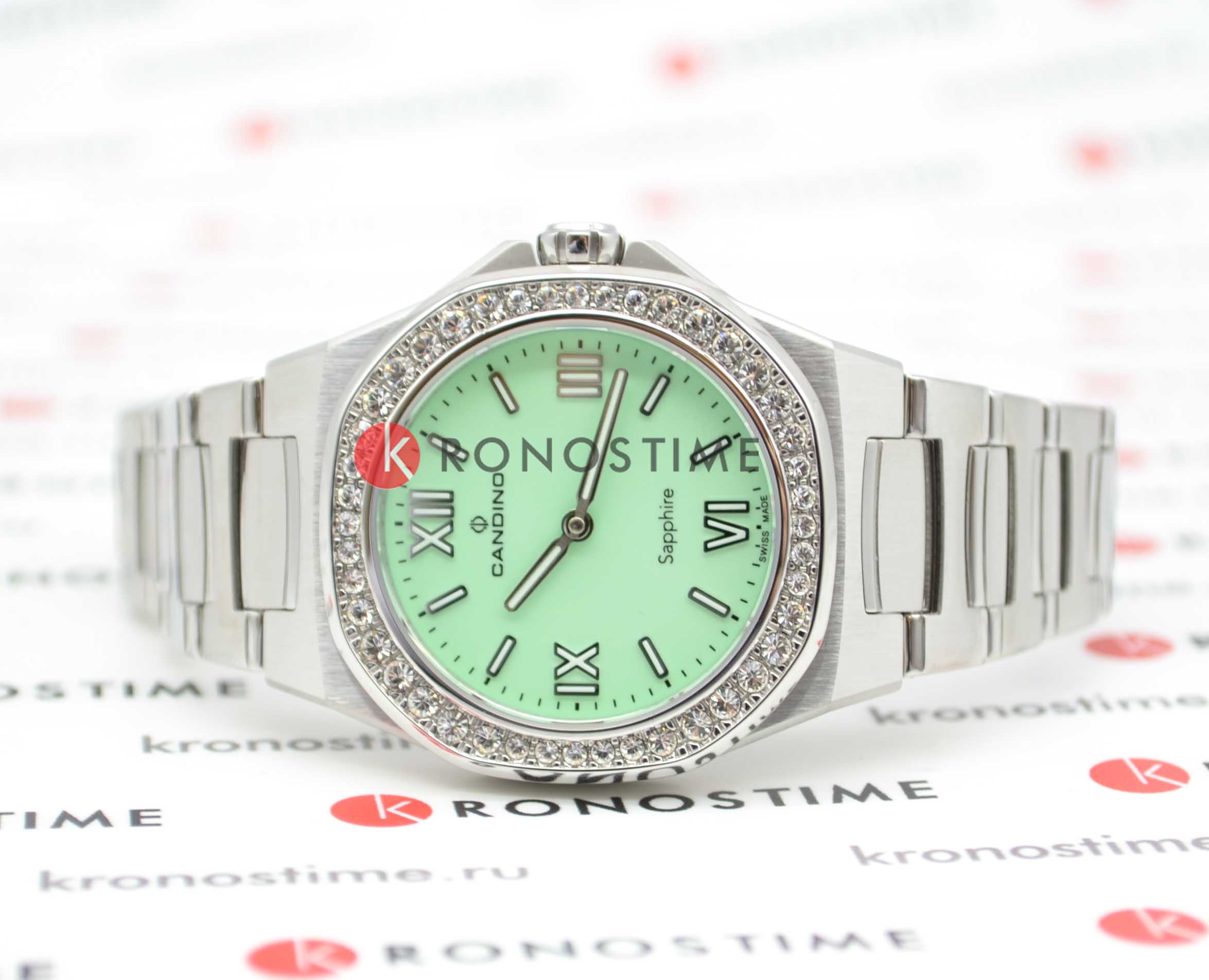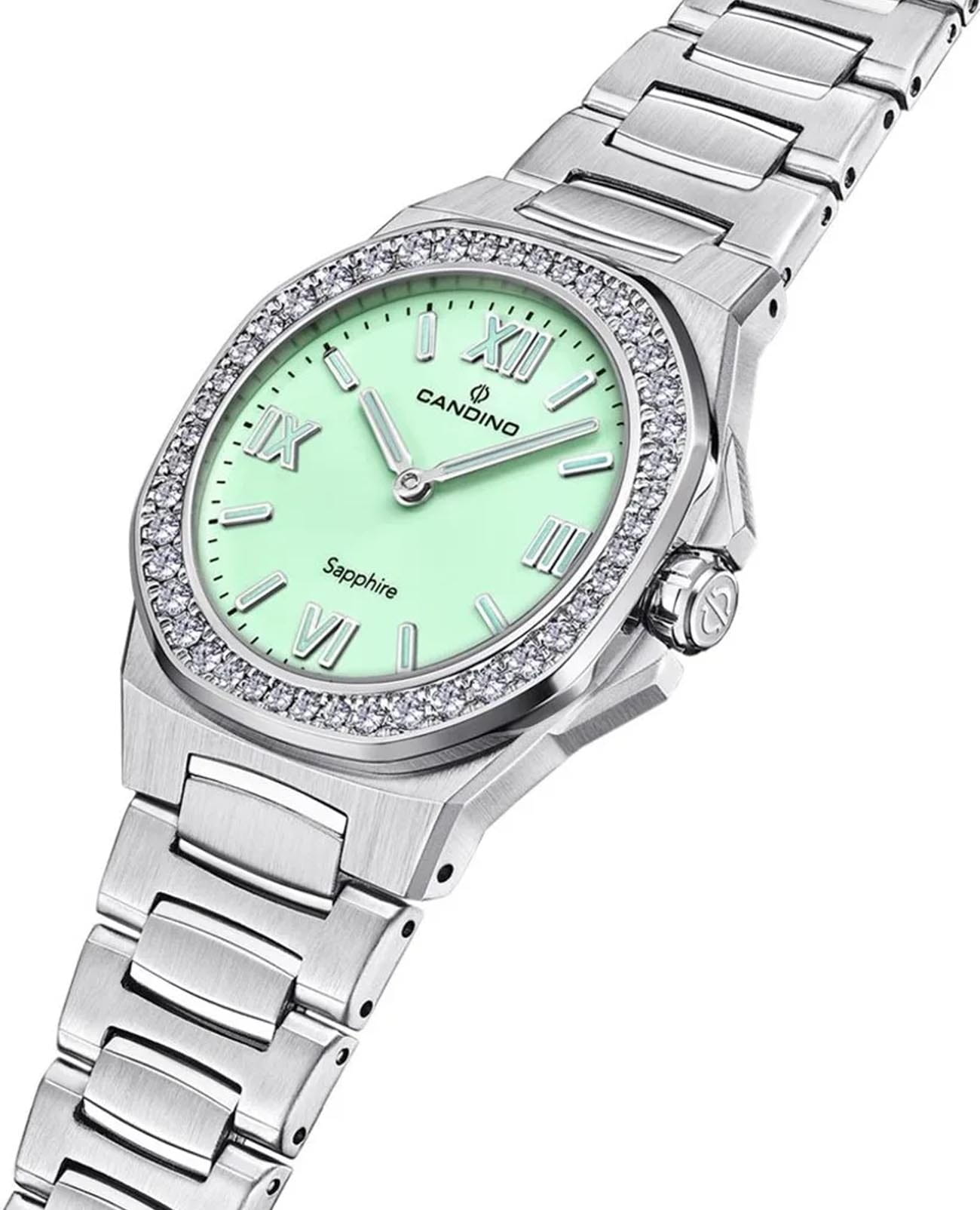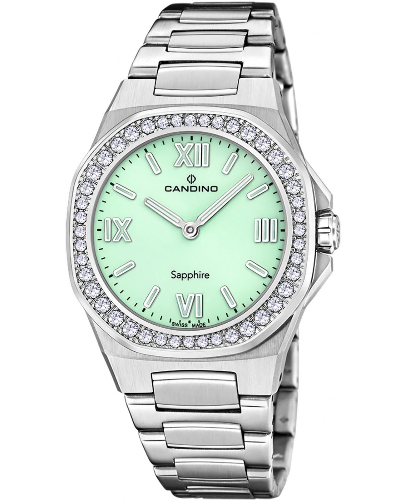 Женские наручные часы Candino Elegance C4753/2 с надёжным кварцевым механизмом. Корпус и браслет часов изготовлены из нержавеющей стали. Сапфировое стеклоСапфировое стеклоПрочный и надёжный материал из кристалла сапфира синтетического происхождения, характеризующийся особой твёрдостью и устойчивостью к царапинам и повреждениям. повышенной прозрачности, устойчивое к мелким механическим повреждениям. Стальной браслет на раскладной застёжкеРаскладная застёжкаТакой тип застёжки используется только на браслетах из металла. Она никогда не раскрывается полностью, происходит разделение на 2 и более частей. Раскладывающая застёжка снизит вероятность потери часов к минимуму.. Стрелки и метки с люминесцентным покрытиемЛюминесцентное покрытиеПозволяет считывать показания времени в темноте. Производители наносят на стрелки, часовые индексы, безель или поверхность циферблата светонакопительный состав, дающий холодное свечение.. БезельБезельВнешний ободок, закрепляющий стекло. В спортивных часах так называется поворотное кольцо с делениями на циферблате, выполняет роль таймера – замеряет отрезки времени на шкале. Неподвижный безель – элемент декора. Однонаправленно вращающийся безель на дайверских часах позволяет фиксировать моменты погружения и выныривания на поверхность. инкрустирован кристаллами. Класс водозащиты: 50 метров, позволит защитить корпус от случайных брызг или капель дождя.