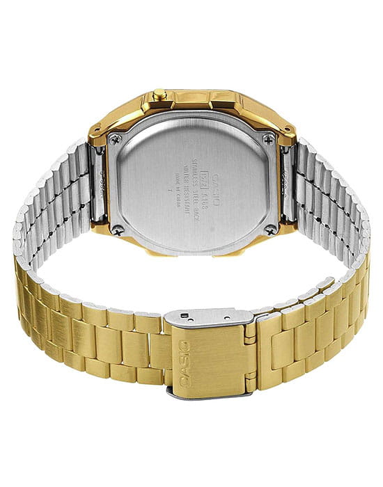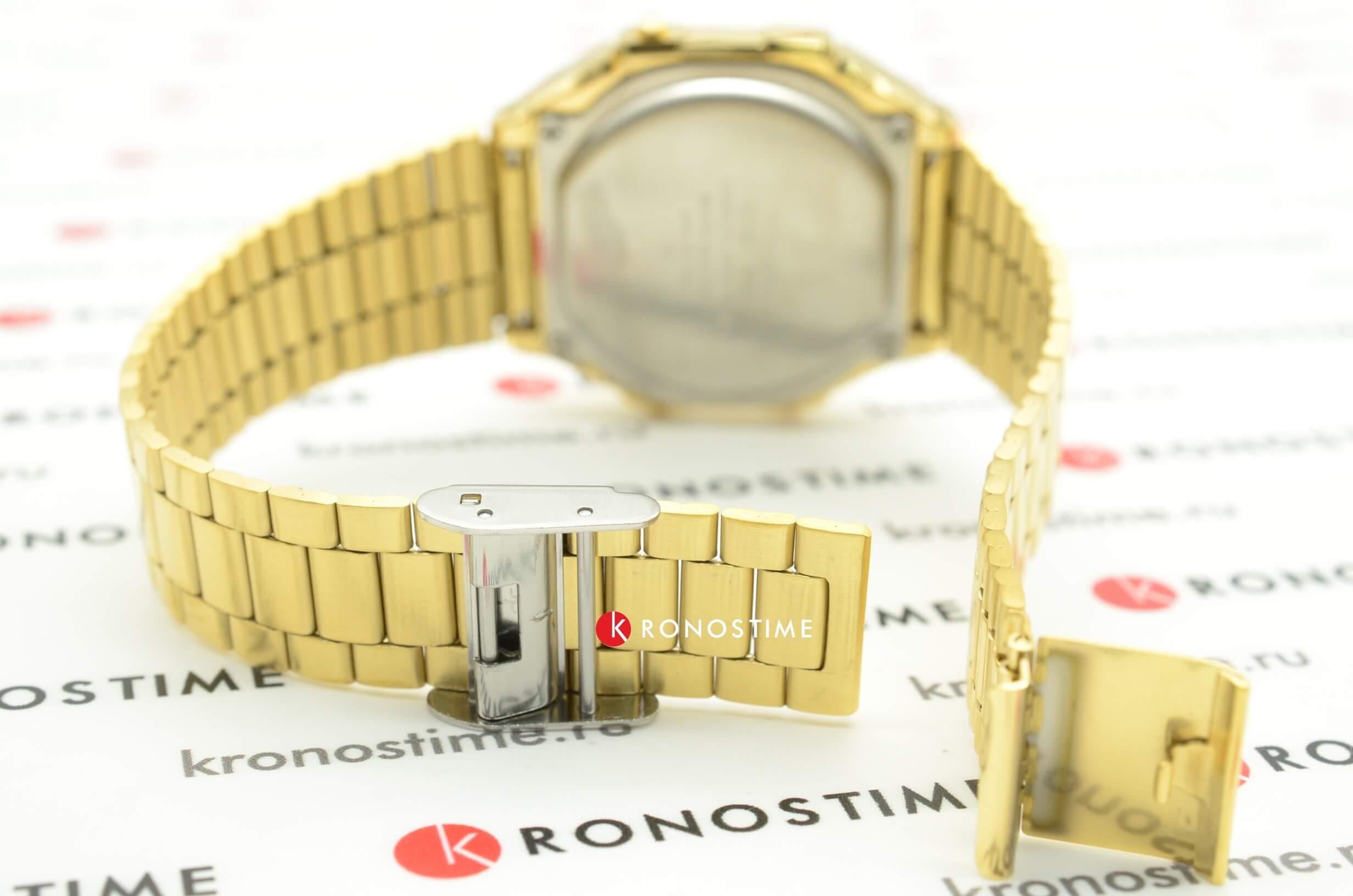 Брендовый аксессуар в золотом цвете имеет IP-покрытиеIP-покрытиеМетод ионного напыления. Демонстрирует повышенную устойчивость к истиранию, окислению и химическим веществам. Под воздействием высокого давления и температуры около 1500°C молекулы металла надёжно соединяются с частицами корпуса часов. стального браслета, защищающее от царапин и изнашивания, а также выполняющее декоративное предназначение. Оригинально смотрится циферблат с узором. Высокоточный кварцевый механизм. Яркая электролюминесцентная подсветка. Противоударный корпусУдаропрочный корпусМеханизм заключён в корпус, выполненный из современных материалов, устойчивых к ударам, механическим повреждениям и падению с высоты: инновационный пластик, карбон, нержавеющая сталь, титан. из надёжного пластика. Удобная застёжка расстёгивается одним касанием. Будильник, автоматический календарь. Габариты: 36,3 x 38,6 x 9,6 мм.