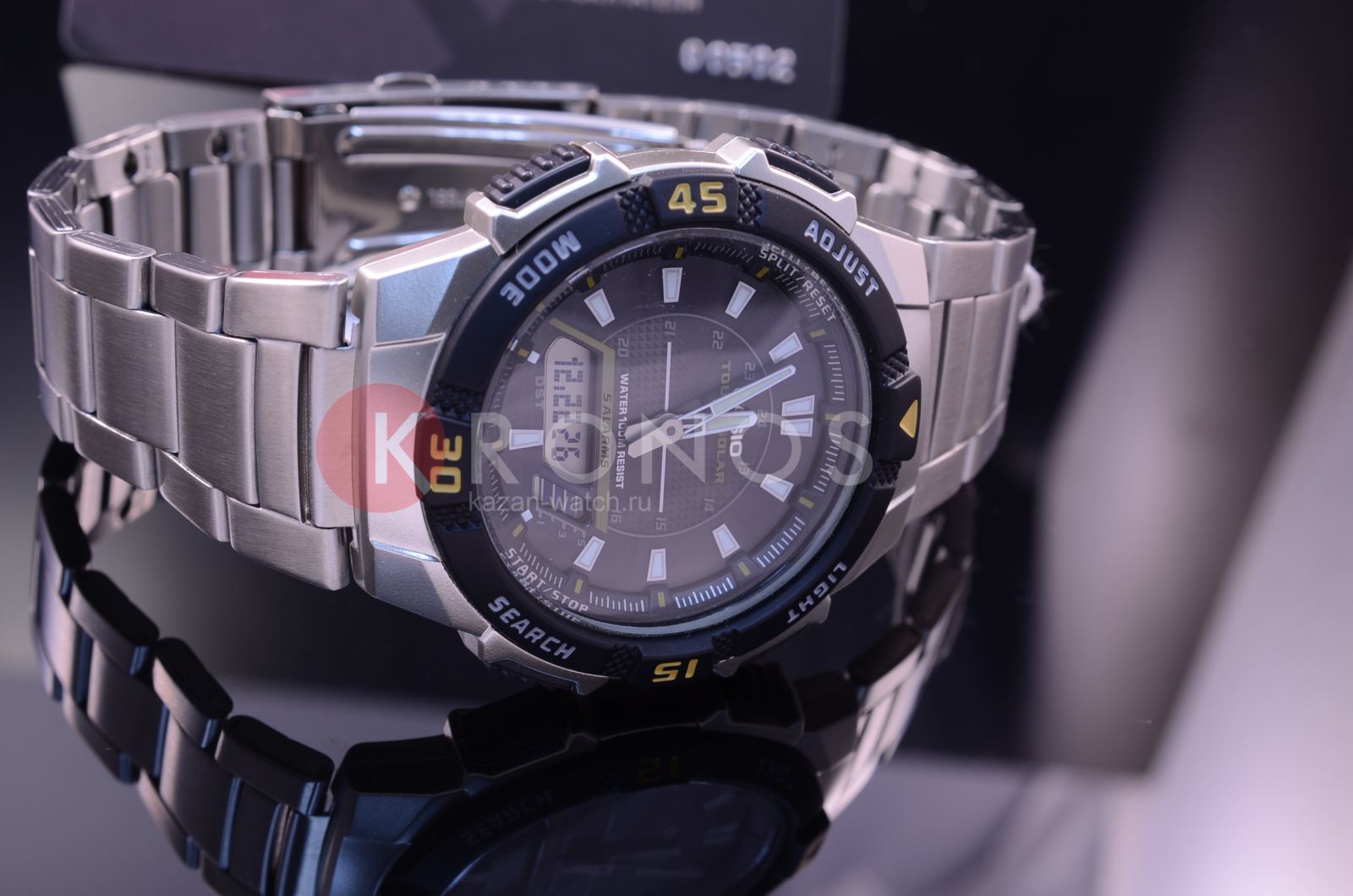 Японские спортивные мужские наручные часы AQ-S800WD-1ER с кварцевым механизмом. Оснащены функциями термометра, будильника, таймера, секундомера, мирового времени. Корпус - Пластиковый; Стекло - Пластик; Водозащита - 100 м. (WR 100); Материал ремешка - Нержавеющая сталь; Цвет ремешка - Серебристый; Цвет циферблата - Черный.