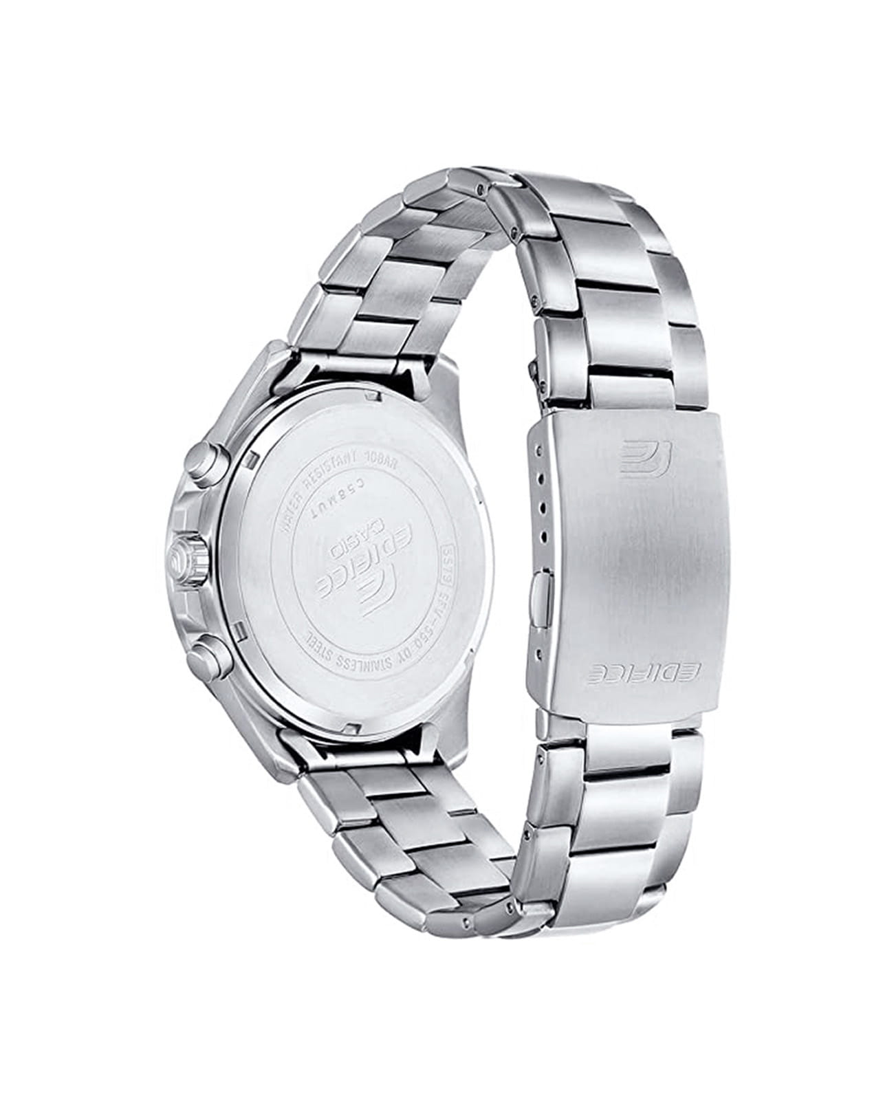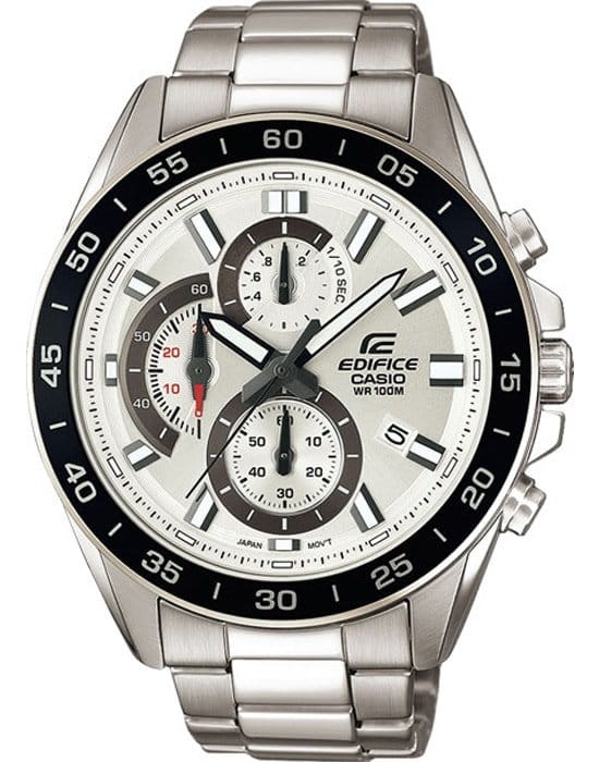 Японские мужские часы-хронографХронографФункция позволяет измерять отрезки времени с особой точностью: часы, минуты, секунды. Верным признаком хронографа является наличие на циферблате 3 дополнительных окошек-счётчиков. Casio Edifice EFV-550D-7A. Минеральное стеклоМинеральное стеклоМинеральное стекло представляет собой искусственно выращенный минерал кварца. Такое стекло отличается особой устойчивостью к повреждениям и царапинам. Уступает по некоторым качествам сапфировому стеклу. устойчивое к появлению царапин, обладающее высокой прозрачностью. Корпус часов изготовлен из нержавеющей стали. БезельБезельВнешний ободок, закрепляющий стекло. В спортивных часах так называется поворотное кольцо с делениями на циферблате, выполняет роль таймера – замеряет отрезки времени на шкале. Неподвижный безель – элемент декора. Однонаправленно вращающийся безель на дайверских часах позволяет фиксировать моменты погружения и выныривания на поверхность. из стали с IP-покрытиемIP-покрытиеМетод ионного напыления. Демонстрирует повышенную устойчивость к истиранию, окислению и химическим веществам. Под воздействием высокого давления и температуры около 1500°C молекулы металла надёжно соединяются с частицами корпуса часов.. Светодиодная автоподсветка NeobriteПодсветка NeobriteИспользование светонакопительных составов на основе сульфида цинка или алюмината стронция, яркий свет можно наблюдать на протяжении 6-10 часов после «зарядки» часов около источника света. - при повороте часов в сторону лица подсветка дисплея осуществляется автоматически. Настраиваемое послесвечение 1,5 или 3сек. СекундомерСекундомерСекундоме́р — прибор, способный измерять интервалы времени с точностью до долей секунды. с точностью измерения 1/100 секунды и измерением до 23 часов 59 минут 59,99 cек. ТаймерТаймерОтсчитывает секунды в обратном направлении в заданном интервале времени. обратного отсчета (диапазон времени 24 часа), автоматический календарь, 12/24 отображение времени. Класс водозащиты: 100 метров, позволит плавать, нырять и заниматься другими водными видами спорта. Стальной браслет на раскладной застёжкеРаскладная застёжкаТакой тип застёжки используется только на браслетах из металла. Она никогда не раскрывается полностью, происходит разделение на 2 и более частей. Раскладывающая застёжка снизит вероятность потери часов к минимуму..