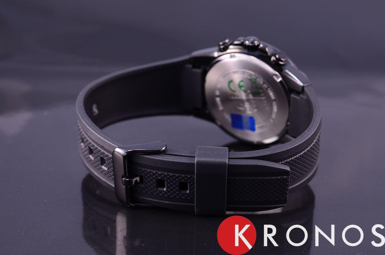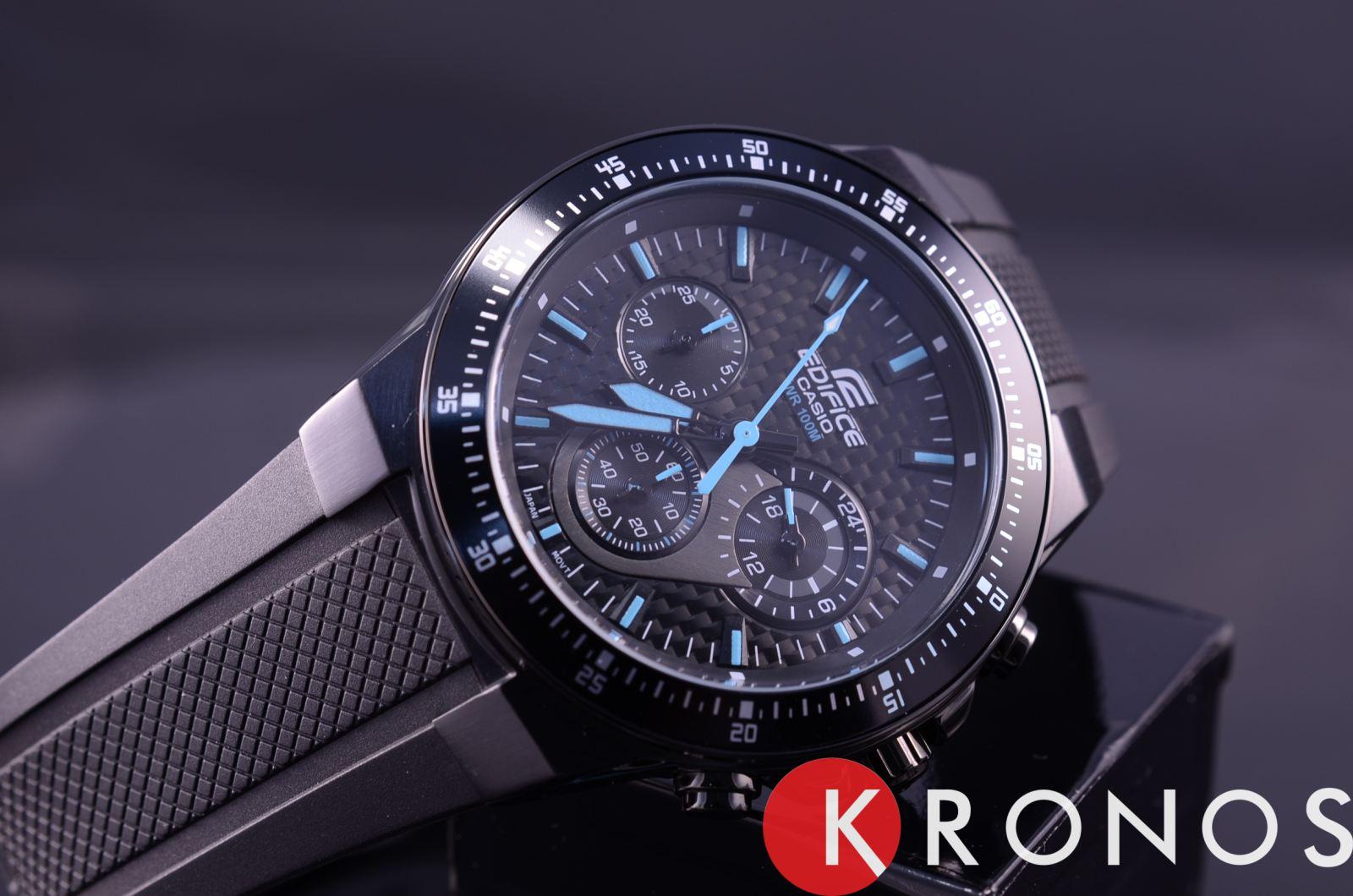 Стильный мужские наручные часы Casio Edifice надежные и практичные. Кварцевый японский механизм Miyota. Точность хода не хуже -10 +15 сек./в месяц. Часы оснащены функцией хронографа. Циферблат черного цвета с синими стрелками и индексами. Стрелки и индексы с светонакопительным нанесением. Корпус выполнен из высококачественной стали с антикоррозийными свойствами с IP покрытием чёрного цвета. Ремешок из полимерного пластика. Натуральный полимерный материал является идеальным для изготовления ремешка благодаря своей чрезвычайной прочности и гибкости. Минеральное стекло устойчиво к появлению царапин. Водонепроницаемость 100М. В часах можно плавать.