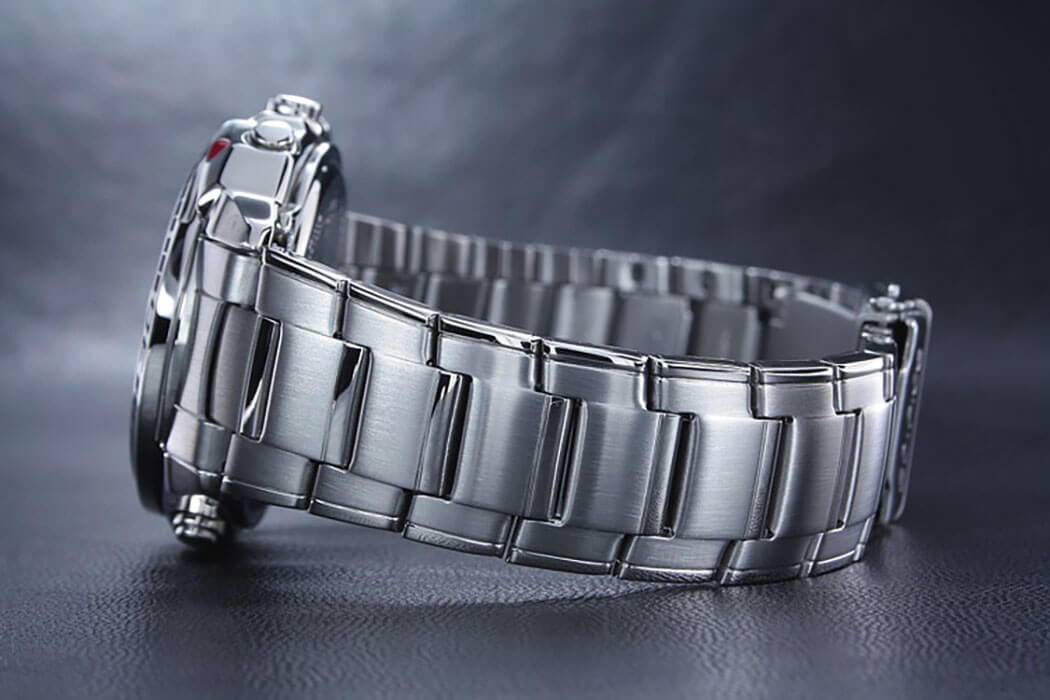 Наручные часы в динамичном автомобильном дизайне станут яркой деталью образа, каждый элемент продуман и отличается оригинальным исполнением. Модель станет великолепным вариантом для спортсменов, туристов, путешественников за счёт дополнительных возможностей: термометр -10°C /+60°C, таймер с автоповтором, будильник, автоматический календарь, мировое времяМировое время Полезное часовое усложнение, отображающее время в основных городах и известных областях по всему миру, оно связано с часовыми поясами, удобно для путешественников и бизнесменов. . Память на 50 кругов для измерения времени, прошедшего с начала тренировки или гонки. Срок службы батарейки - 3 года. Сферическое минеральное стекло. Водозащита 10 бар. 12/24-часовое отображение времени. Светодиодная подсветкаСветодиодная подсветкаСветодиодная или LED-подсветка обеспечивает появление яркого холодного свечения за счёт LED-элементов - маленьких лампочек. Они потребляют минимальное количество энергии, чаще всего можно встретить 1 светодиод, в нижней части циферблата.. Браслет и противоударный корпусУдаропрочный корпусМеханизм заключён в корпус, выполненный из современных материалов, устойчивых к ударам, механическим повреждениям и падению с высоты: инновационный пластик, карбон, нержавеющая сталь, титан. из нержавеющей стали 316L. Габариты: 44,9 x 48,4 x 13,1 мм.