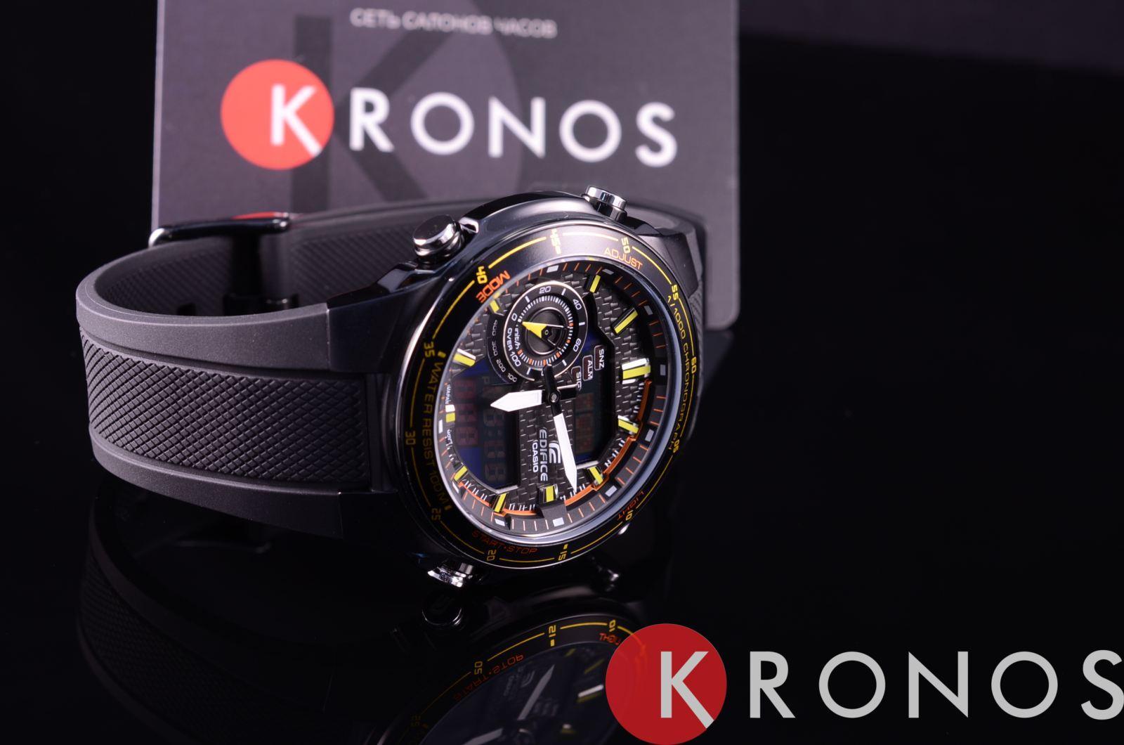 Стильный мужские наручные часы Casio Edifice надежные и практичные. Автоматическая электролюминесцентная подсветка. Благодаря электролюминесцентной панели, обеспечивающей равномерное освещение всего циферблата, облегчается считывание данных. При наклоне часов в сторону лица для считывания функция автоподсветки обеспечивает автоматическое включение электролюминесцентной подсветки. Отображение текущего времени в основных городах и регионах мира. Секундомер с точностью показаний 1/100 сек и максимальным временем измерения - 100 час. Таймер обратного отсчета. Ежедневный будильник со звуковым сигналом. Автоматический календарь. Минеральное стекло устойчивое к возникновению царапин. Корпус из нержавеющей стали с IP покрытием черного цвета. Ремешок из полимерного пластика. Натуральный полимерный материал является идеальным для изготовления ремешка благодаря своей чрезвычайной прочности и гибкости.
