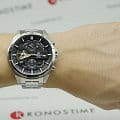 Спортивный аксессуар отличается динамичным циферблатом с большим количеством деталей, золотистые элементы отлично выделяются на тёмном фоне. Ударопрочный корпусУдаропрочный корпусМеханизм заключён в корпус, выполненный из современных материалов, устойчивых к ударам, механическим повреждениям и падению с высоты: инновационный пластик, карбон, нержавеющая сталь, титан. и браслет выполнены из нержавеющей стали 316L, характеризующейся долговечностью. Точность хода кварцевого механизма составляет +/- 30 секунд в месяц. Люминесцентная подсветкаЛюминесцентное покрытиеПозволяет считывать показания времени в темноте. Производители наносят на стрелки, часовые индексы, безель или поверхность циферблата светонакопительный состав, дающий холодное свечение.. Минеральное стекло. Завинчивающаяся задняя крышка. Водостойкость 10 бар. ХронографХронографФункция позволяет измерять отрезки времени с особой точностью: часы, минуты, секунды. Верным признаком хронографа является наличие на циферблате 3 дополнительных окошек-счётчиков., секундомер, календарь. Габариты: 53,5 x 48,7 x 12,6 мм.