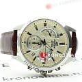 Кварцевый хронографХронографФункция позволяет измерять отрезки времени с особой точностью: часы, минуты, секунды. Верным признаком хронографа является наличие на циферблате 3 дополнительных окошек-счётчиков. отличается оригинальным дизайном циферблата, выдержанном в автомобильной стилистике. Стрелки, часовые метки, ободок отдельных счётчиков выполнены в серебристом цвете, они великолепно выделяются на кремовом фоне. Наручные часы одновременно воплощают классический и спортивный стиль, что делает их отличным вариантом на каждый день. Надёжное минеральное стекло. Коричневый ремешок из натуральной кожи. Завинчивающаяся задняя крышка. Водостойкость до 10 бар. Апертура даты, секундомер. Габариты: 51 x 43,8 x 12,4 мм.