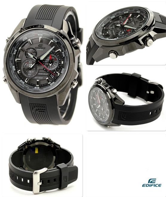Питание от солнечной энергии. Индикатор зарядки элемента питания. Корпус выполнен из нержавеющей стали с темным ионным покрытием, безель с черным IP-покрытием и контрастной разметкой. Прочный полимерный ремешок с классической застежкой. Минеральное стекло, устойчивое к возникновению царапин. Хронограф с точностью показаний 1/100 сек. Ежедневный будильник.Отображение текущего времени в 29 часовых зонах. Люминесцентное светонакопительное покрытие Водонепроницаемость 100М. В часах можно плавать.