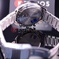 Брендовый аксессуар в чёрно-серебристой цветовой гамме отражает автогоночный стиль, динамично смотрятся золотистые элементы циферблата. Спортивный хронографХронографФункция позволяет измерять отрезки времени с особой точностью: часы, минуты, секунды. Верным признаком хронографа является наличие на циферблате 3 дополнительных окошек-счётчиков. наделён ударопрочным корпусомУдаропрочный корпусМеханизм заключён в корпус, выполненный из современных материалов, устойчивых к ударам, механическим повреждениям и падению с высоты: инновационный пластик, карбон, нержавеющая сталь, титан. из нержавеющей стали 316L, отличающейся долговечностью и устойчивостью к царапинам. Это часы с успешной реализацией технологии , индикатор заряда батареи информирует о необходимости зарядить модель. Японский кварцевый механизм с точностью хода +/- 20 секунд в месяц. Завинчивающаяся задняя крышка. Люминесцентная подсветка NeobriteПодсветка NeobriteИспользование светонакопительных составов на основе сульфида цинка или алюмината стронция, яркий свет можно наблюдать на протяжении 6-10 часов после «зарядки» часов около источника света.. Заводная головка с защитой. БезельБезельВнешний ободок, закрепляющий стекло. В спортивных часах так называется поворотное кольцо с делениями на циферблате, выполняет роль таймера – замеряет отрезки времени на шкале. Неподвижный безель – элемент декора. Однонаправленно вращающийся безель на дайверских часах позволяет фиксировать моменты погружения и выныривания на поверхность. с IP-покрытиемIP-покрытиеМетод ионного напыления. Демонстрирует повышенную устойчивость к истиранию, окислению и химическим веществам. Под воздействием высокого давления и температуры около 1500°C молекулы металла надёжно соединяются с частицами корпуса часов.. Минеральное стекло. Секундомер, индикация числа. Габариты: 52,9 x 49 x 13,2 мм.