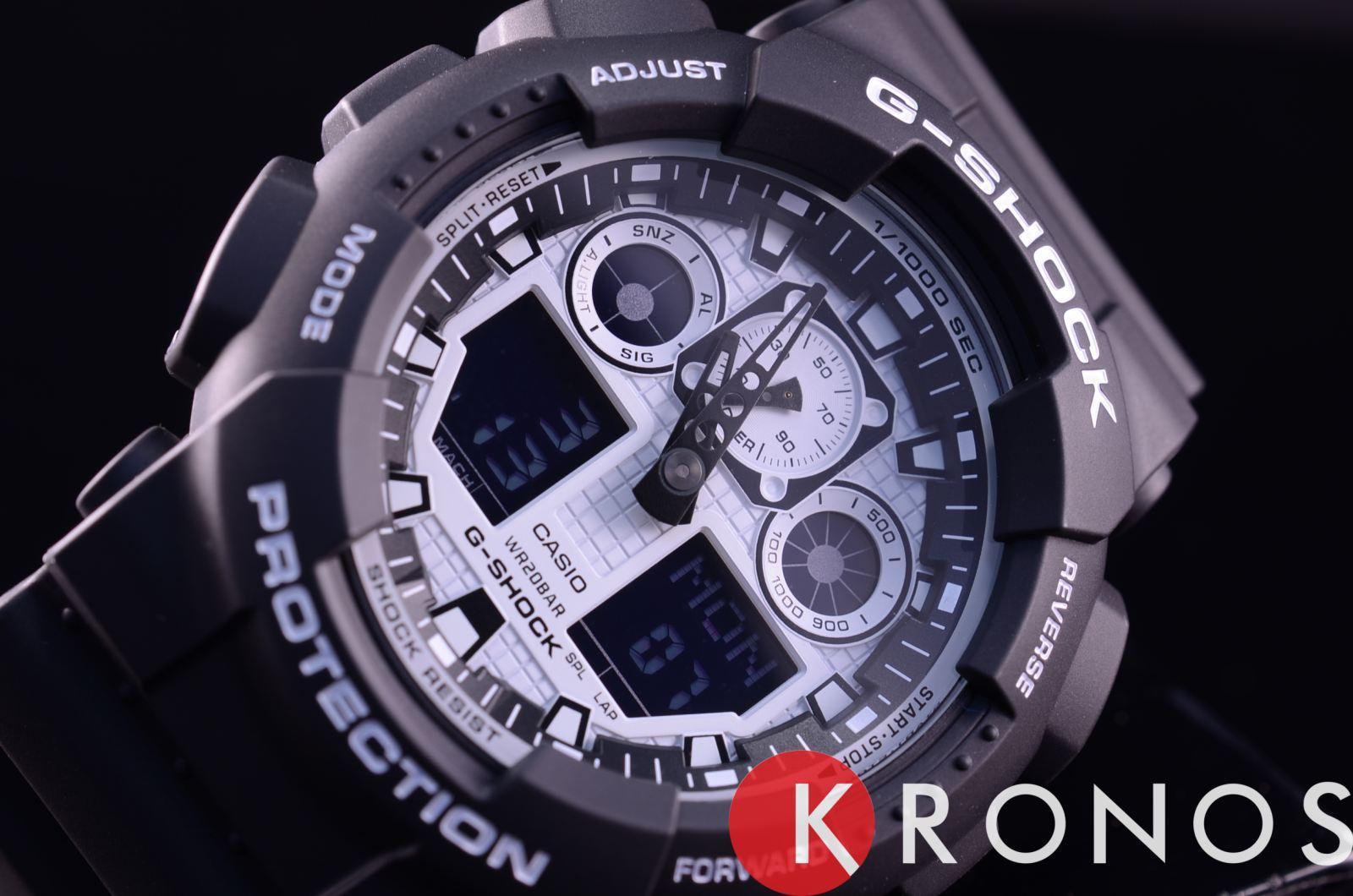 Японские мужские часы Casio G-Shock GA-100BW-1A с хронографом