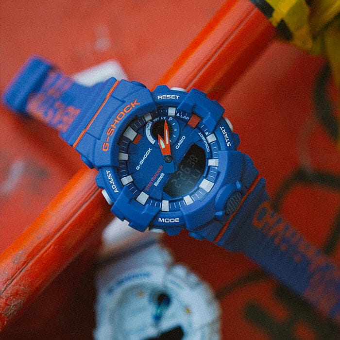 Японские мужские часы GBA-800DG-2AER из коллекции G-Shock станут ключевой особенностью вашего образа благодаря запоминающемуся внешнему виду и ярко-синему цвету с оранжевыми деталями.