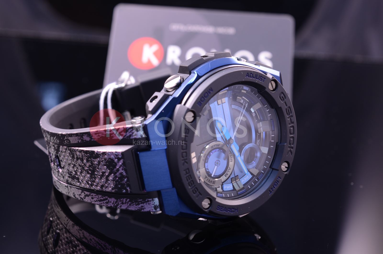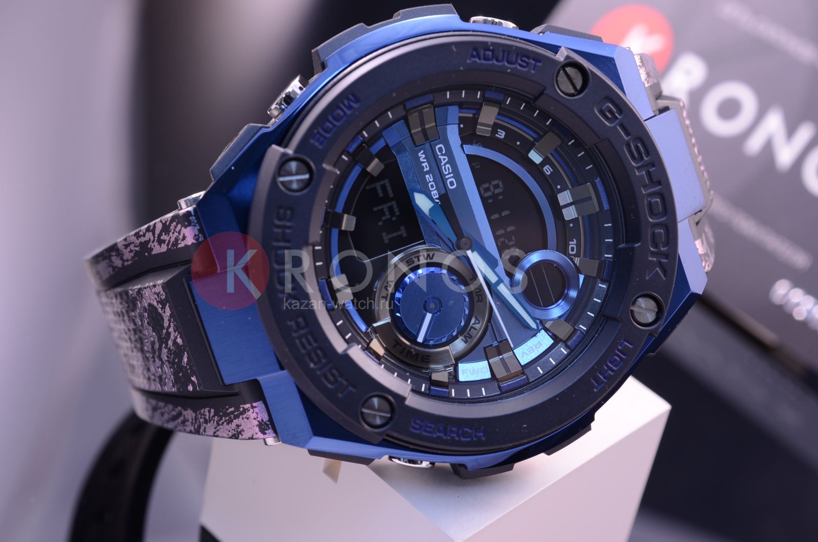 Cтильные мужские японские наручные часы. Корпус часов сделан из высокопрочной стали с PVD покрытием синего цвета. Минеральное стекло, устойчивое к появлению царапин. Часы GST-200CP-2A снабжены множеством дополнительных функций - секундомер, таймер обратного отсчета, календарь, полностью автоматическая подсветка с автоматической регулируемой автоматизацией. Ежечасный сигнал, повтор сигнала будильника, мировое время. Водонепроницаемость часов до 200 метров (возможны занятия дайвингом). Особый шарм часам придает 3D дизайн - углубленные, объемные индексы и стрелки.