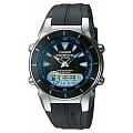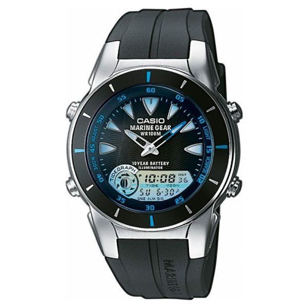 Современные японские мужские наручные часы-хронограф. Круглый корпус и браслет выполнены из черного пластика. Водонепроницаемость до 100 метров. Множество дополнительных функций - таймер обратного отсчета, секундомер, будильник, вечный календарь, подсветка дисплея и стрелок, индикатор фазы луны.
