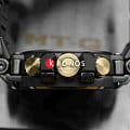 Часы привлекают эксклюзивным внешним видом, камуфляжный принт был нанесён с помощью современной лазерной технологии, работа осуществляется 3 «пискелями» разного диаметра. Традиционный для серии Casio MTG-1000 ударопрочный корпусУдаропрочный корпусМеханизм заключён в корпус, выполненный из современных материалов, устойчивых к ударам, механическим повреждениям и падению с высоты: инновационный пластик, карбон, нержавеющая сталь, титан. с ромбовидным рисунком циферблата дополнен золотистыми деталями. Он выполнен из нержавеющей стали 316L и полимера, дополнительную устойчивость к вибрации и перепадам температур придаёт слой геля Alpha Gel®. Композитный браслет из стали и полимерного материала. Технология . Светодиодная подсветкаСветодиодная подсветкаСветодиодная или LED-подсветка обеспечивает появление яркого холодного свечения за счёт LED-элементов - маленьких лампочек. Они потребляют минимальное количество энергии, чаще всего можно встретить 1 светодиод, в нижней части циферблата. циферблата, люминесцентная подсветкаЛюминесцентное покрытиеПозволяет считывать показания времени в темноте. Производители наносят на стрелки, часовые индексы, безель или поверхность циферблата светонакопительный состав, дающий холодное свечение. Neobrite. Сферическое сапфировое стекло. Надёжное IP-покрытиеIP-покрытиеМетод ионного напыления. Демонстрирует повышенную устойчивость к истиранию, окислению и химическим веществам. Под воздействием высокого давления и температуры около 1500°C молекулы металла надёжно соединяются с частицами корпуса часов.. Функции: BluetoothBluetoothСовременная технология, позволяющая синхронизировать часы с телефоном и переносить данные. Часы с Bluetooth расширяют возможности вашего смартфона и делают его использование ещё более удобным., приём радиосигнала, установление точного времени через синхронизацию с сервером, мировое времяМировое время Полезное часовое усложнение, отображающее время в основных городах и известных областях по всему миру, оно связано с часовыми поясами, удобно для путешественников и бизнесменов. , будильник, секундомер, автоматический календарь до 2099 года, таймер. Габариты: 55,8 x 51,7 x 14,4 мм.