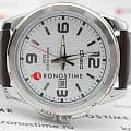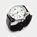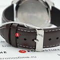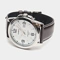 Белый циферблат с серебристыми часовыми метками и стрелками позволяет использовать часы в сочетании с одеждой любого цвета. Корпус из гипоаллергенной латуни отличается лёгкостью, коричневый ремешок из натуральной кожи надёжно обхватывает запястье. Срок службы батарейки для питания кварцевого механизма - 3 года. Люминесцентная подсветкаЛюминесцентное покрытиеПозволяет считывать показания времени в темноте. Производители наносят на стрелки, часовые индексы, безель или поверхность циферблата светонакопительный состав, дающий холодное свечение.. Сохранение водонепроницаемости при давлении до 5 бар. Минеральное стекло. Габариты: 44,9 x 50 x 9,4 мм.