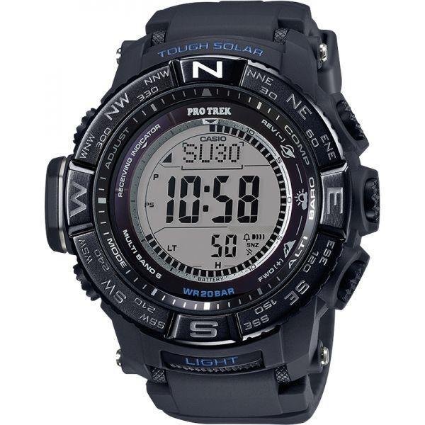 Описание часов Casio Protrek PRW-3510Y-1E - многофункциональные японские мужские наручные часы. Круглый корпус часов выполнен из темного пластика, безель из стали, резиновый браслет. Инверсионный, жидкокристаллический дисплей. Часы оснащены такими дополнительными функциями как секундомер, таймер обратного отсчета, высотометр, термометр, компас, альтиметр. Минеральное стекло, устойчивое к появлению царапин. Магнитоустойчивая, ударопрочная модель. Источником энергии служат солнечные батареи. Синхронизация времени по радиосигналу.