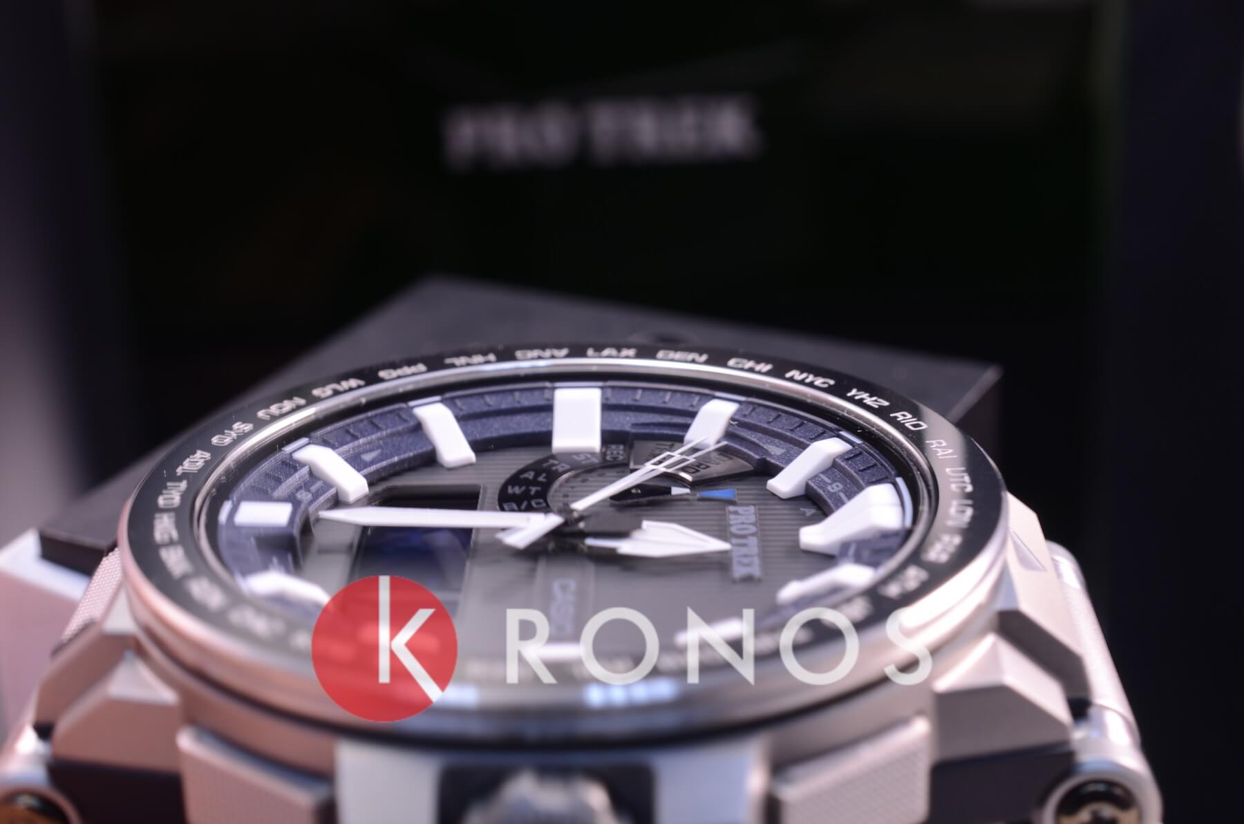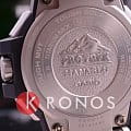 PRX-8000GT-7PR - модель, которая на сегодняшний день считается одной из лучших для занятий профессиональным альпинизмом Сверхнадежные часы отличаются не только премиальным дизайном, богатым набором функций, но и превосходной считываемостью информации, поэтому спокойно могут быть использованы альпинистами даже на высоте 8 километров Самые ключевые детали корпуса этой модели выполнены из высокопрочного сплава титана, который для дополнительной стойкости покрыт слоем карбида титана Корона часов, безель и все кнопки обработаны покрытием DLC (углеродное алмазное вещество) Циферблат со стрелками с двойной люминесцентной обработкой для лучшей видимости в темноте покрыт сверхпрочным сапфировым стеклом PRX-8000GT-7PR имеют максимальную защиту, поэтому не боятся ни ударов, ни вибрации, ни погружения в воду (до 100 метров), ни перепадов температур (до -10°C), да и трудно найти что-то такое, что могло бы их сильно повредить Конечно, при желании можно разбить любые защищенные часы, но в альпинизме, где всякое случается, модель PRX-8000T – это самый надежный помощник, который точно не подведет