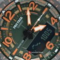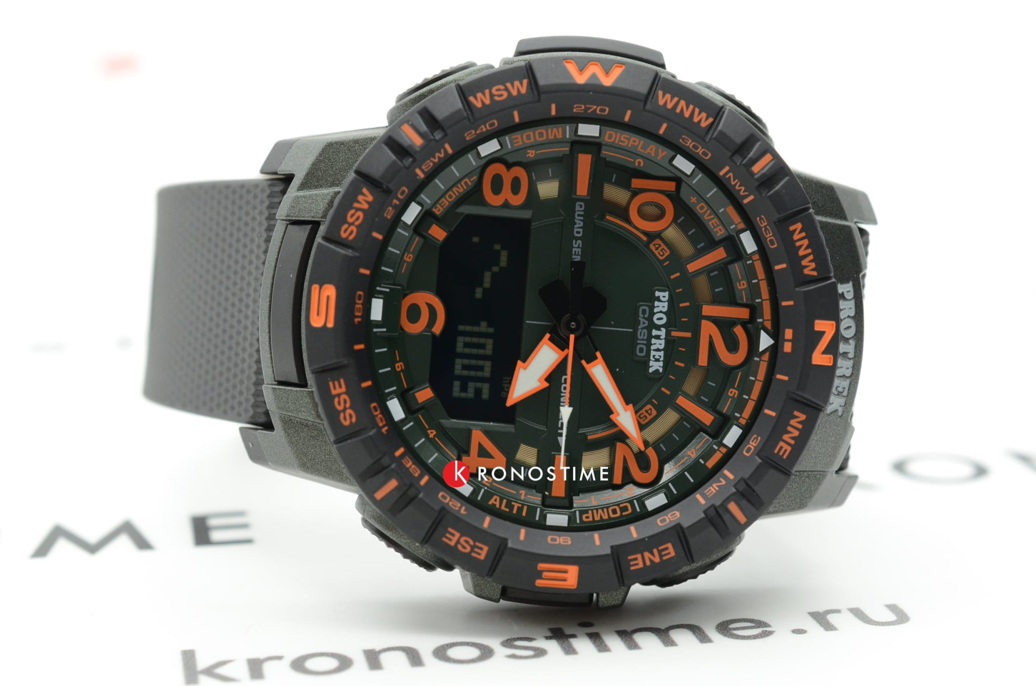 -навигация. Японский кварцевый механизм получает питание от батарейки, рассчитанной на 2-летний срок службы. Устойчивость к температуре ниже -10°C. Степень водостойкости WR 100. Ударопрочный корпусУдаропрочный корпусМеханизм заключён в корпус, выполненный из современных материалов, устойчивых к ударам, механическим повреждениям и падению с высоты: инновационный пластик, карбон, нержавеющая сталь, титан.. Минеральное стекло. Электролюминесцентная подсветкаЭлектролюминесцентная подсветкаЭлектролюминесцентная панель устанавливается под ЖК-экраном часов, при нажатии кнопки электричество преобразуется в свет за счёт подачи напряжения на атомы фосфора, такой тип подсветки позволяет освещать весь циферблат.. Два ремешка в комплекте – полимерный с 3D-текстурой и тканевый. Габариты: 57,5 x 50,8 x 15,8 мм.
