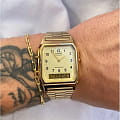 Данная модель сочетает в себе стильный дизайн и симметричность деталей. На стальной браслет нанесено защитное IP-покрытиеIP-покрытиеМетод ионного напыления. Демонстрирует повышенную устойчивость к истиранию, окислению и химическим веществам. Под воздействием высокого давления и температуры около 1500°C молекулы металла надёжно соединяются с частицами корпуса часов.. Время отображается в 12- и 24-часовом форматах. Есть функция мирового времениМировое время Полезное часовое усложнение, отображающее время в основных городах и известных областях по всему миру, оно связано с часовыми поясами, удобно для путешественников и бизнесменов. . Автоматический календарь и будильник. Батарейка служит 3 года.