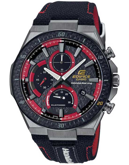 Стильные наручные часы с крупными элементами оформления будут выгодно смотреться в качестве дополнения для повседневного образа, динамики придают детали красного цвета. Оригинально смотрится чёрный тканевый ремешок на кожаной основе. Интерес представляет наличие солнечной батареи , аккумулятор получает питание от солнечного света, обеспечивая автономную работу аксессуара. Индикатор заряда батареи позволяет следить за уровнем заряда батарейки. Сапфировое стекло с антибликовым покрытием. Люминесцентная подсветка NeobriteПодсветка NeobriteИспользование светонакопительных составов на основе сульфида цинка или алюмината стронция, яркий свет можно наблюдать на протяжении 6-10 часов после «зарядки» часов около источника света.. Корпус из нержавеющей стали 316L. Заводная головка с системой защиты. Функции: секундомер, хронографХронографФункция позволяет измерять отрезки времени с особой точностью: часы, минуты, секунды. Верным признаком хронографа является наличие на циферблате 3 дополнительных окошек-счётчиков., календарь. Водозащита 100 метров. Габариты: 45,4x50,2мм, толщина 10,3мм, вес 84г.