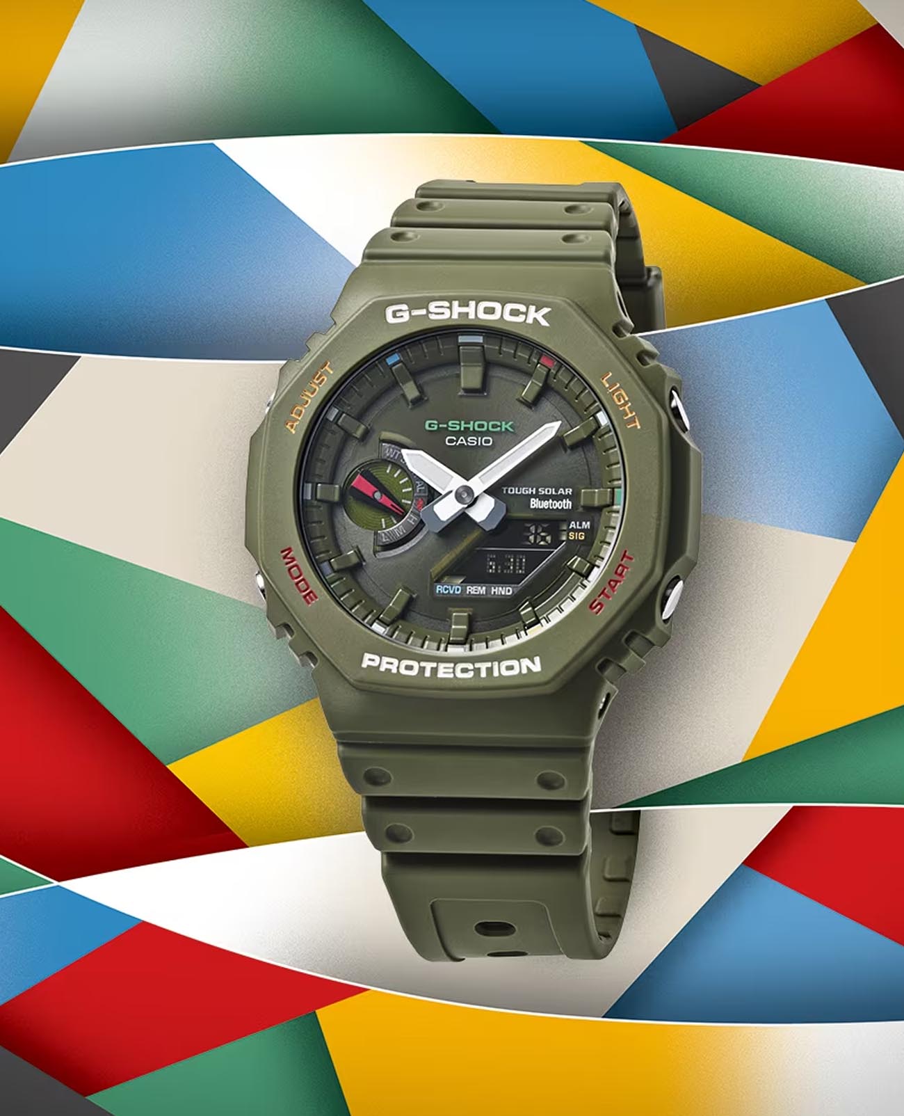 Японские мужские часы-хронографХронографФункция позволяет измерять отрезки времени с особой точностью: часы, минуты, секунды. Верным признаком хронографа является наличие на циферблате 3 дополнительных окошек-счётчиков. Casio G-Shock GA-B2100FC-3A. Супер стильная обновленная расцветка в одном из самых популярных корпусов G-Shock последних лет. Харизматичная модель в матовом оливковом корпусе с контрастными стрелками и яркими деталями циферблата из серии GA-B2100 сохранила внешний облик своих предшественников по серии GA-2100, но получила более технологичный модуль с блютус синхронизацией со смартфоном и Tough SolarTough SolarТехнология основана на подзарядке аккумулятора от источника солнечного света, специальная панель улавливает солнечные лучи и преобразует их в энергию для работы часов. Достаточно пары минут нахождения на солнце для функционирования часов в течении суток.. Минеральное стеклоМинеральное стеклоМинеральное стекло представляет собой искусственно выращенный минерал кварца. Такое стекло отличается особой устойчивостью к повреждениям и царапинам. Уступает по некоторым качествам сапфировому стеклу. устойчивое к появлению царапин, обладающее высокой прозрачностью. Ударопрочный корпусУдаропрочный корпусМеханизм заключён в корпус, выполненный из современных материалов, устойчивых к ударам, механическим повреждениям и падению с высоты: инновационный пластик, карбон, нержавеющая сталь, титан. Carbon Core GuardCarbon Core Guard Новейшая структура корпуса, разработанная Casio. Полиуретановая пластина дополнительно усилена карбоновыми вставками, что придаёт специальную защиту от механических повреждений. Карбон отличается лёгкостью и прочностью.. Светодиодная подсветкаСветодиодная подсветкаСветодиодная или LED-подсветка обеспечивает появление яркого холодного свечения за счёт LED-элементов - маленьких лампочек. Они потребляют минимальное количество энергии, чаще всего можно встретить 1 светодиод, в нижней части циферблата. освещает весь циферблат, после отпускания кнопки свечение продолжается еще некоторое время. Настраиваемое послесвечение 1,5 или 3сек. Мировое время Мировое время Полезное часовое усложнение, отображающее время в основных городах и известных областях по всему миру, оно связано с часовыми поясами, удобно для путешественников и бизнесменов. 38 городов (38 часовых поясов), всемирное координированное время UTCUTCВсемирное кординационное время, не имеющее привязки к географическому положению Гринвича, основывается на атомном отсчёте времени. Регулировка времени осуществляется более точно, чем устаревшее GMT.