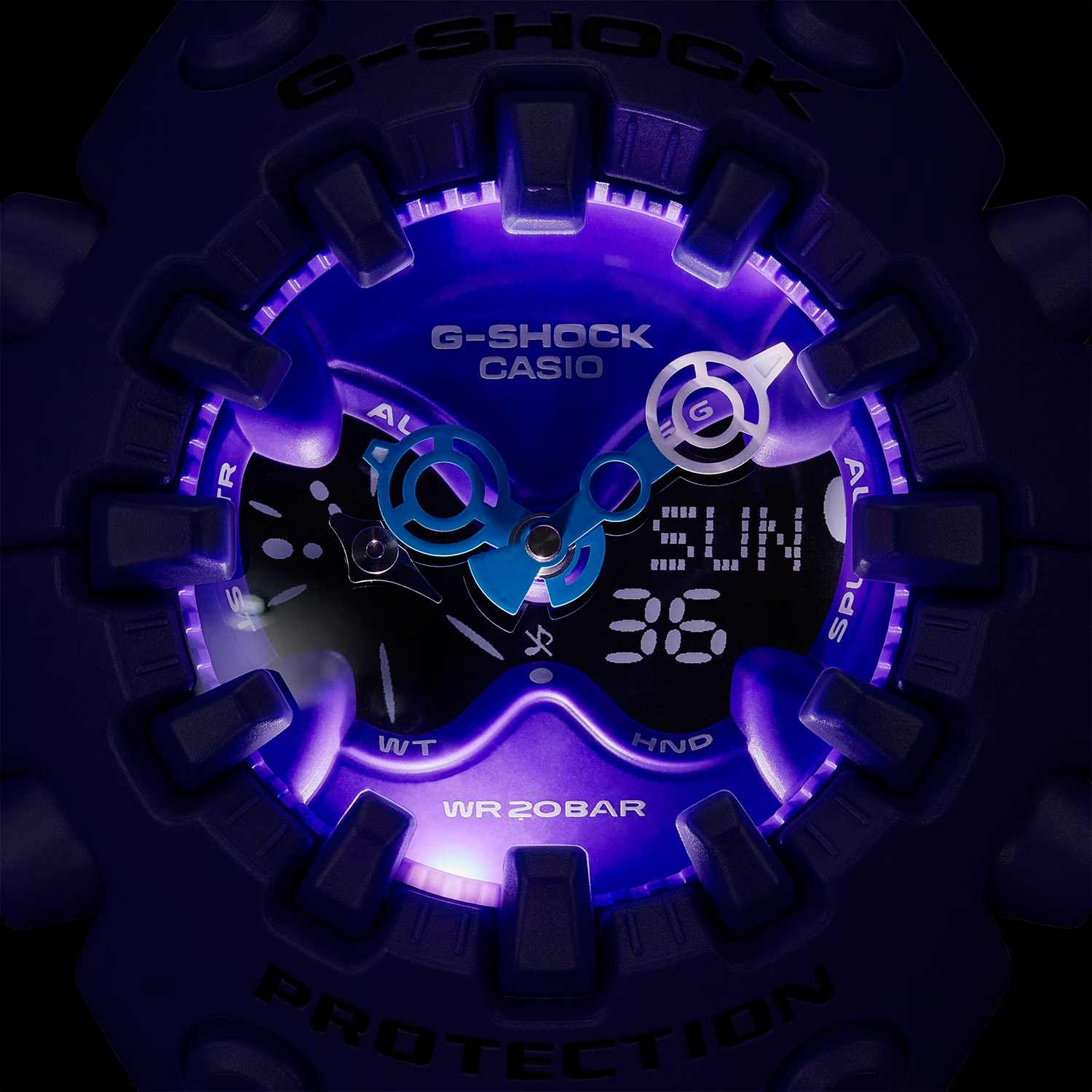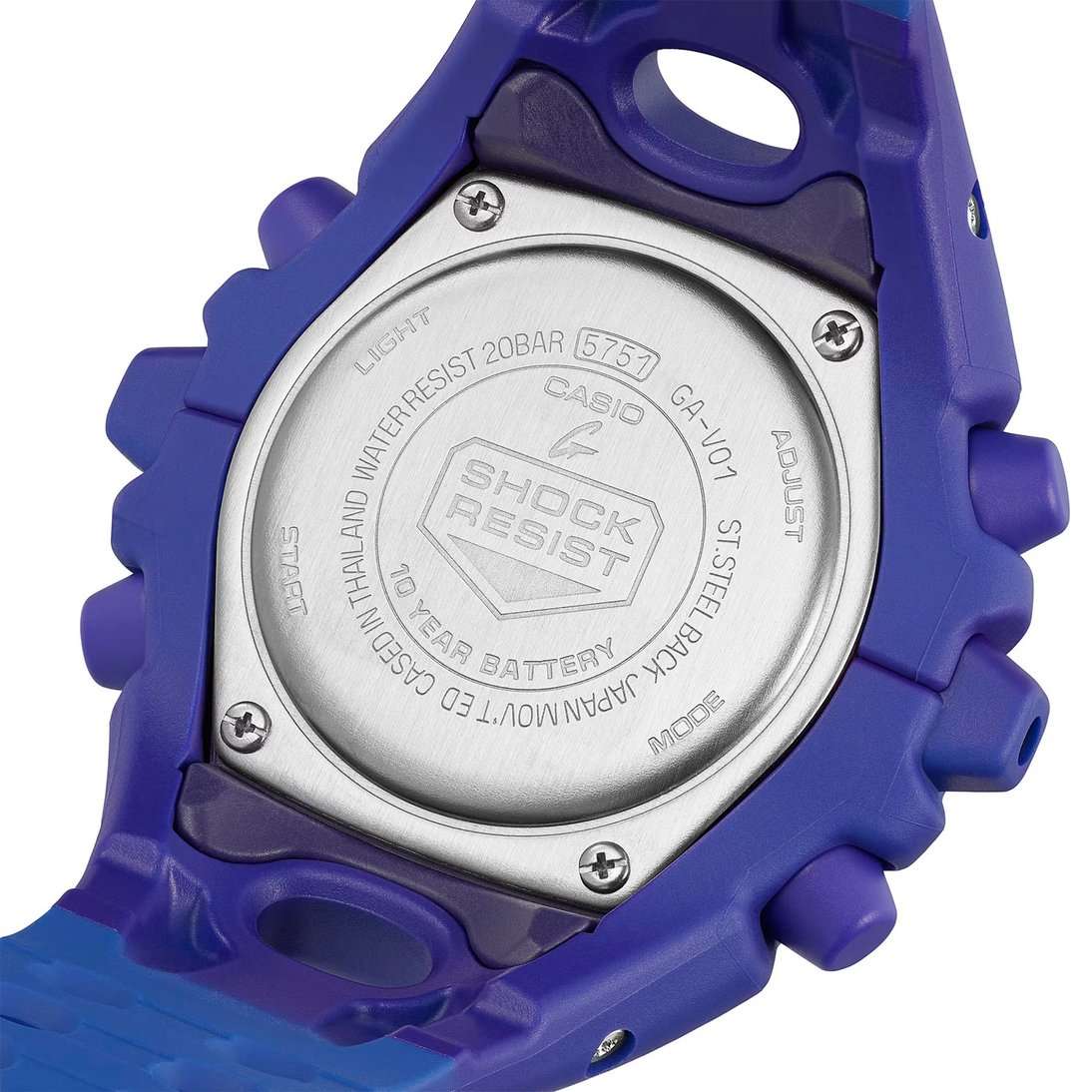 Мужские наручные часы Casio G-Shock GA-V01-2A — это яркое сочетание футуристического дизайна и передовых технологий. Модель выполнена в ударопрочном корпусеУдаропрочный корпусМеханизм заключён в корпус, выполненный из современных материалов, устойчивых к ударам, механическим повреждениям и падению с высоты: инновационный пластик, карбон, нержавеющая сталь, титан. из пластика и оснащена аналого-цифровым отображением времени, что делает их универсальными как для повседневной жизни, так и для активного образа жизни. Часы работают на кварцевом механизме, обеспечивающем точность хода и минимальное обслуживание. Батарейка рассчитана на 10 лет использования, что делает модель особенно экономичной и удобной в эксплуатации. Часы обладают водонепроницаемостью до WR200, позволяют плавать, нырять и заниматься другими водными видами спорта без опасений за сохранность механизма. Циферблат дополнен функцией мирового времени, окошком даты, а также возможностью переключения между 12-ти и 24-х часовым форматом времени. Присутствуют функции хронографа , секундомера с точностью 1/100 секунды, таймераТаймерОтсчитывает секунды в обратном направлении в заданном интервале времени. обратного отсчёта на 24 часа, пяти ежедневных будильниковБудильникБуди́льник — часы, в заданный момент времени подающие звуковой, световой и/или в редких случаях другой сигнал. и почасового сигнала. Также реализована функция временного перемещения стрелок, чтобы обеспечить беспрепятственный обзор цифровых показаний. Циферблат защищен прочным минеральным стекломМинеральное стеклоМинеральное стекло представляет собой искусственно выращенный минерал кварца. Такое стекло отличается особой устойчивостью к повреждениям и царапинам. Уступает по некоторым качествам сапфировому стеклу., а ремешок изготовлен из высококачественного полимерного материала, обеспечивающего комфорт при ношении.Светодиодная подсветкаСветодиодная подсветкаСветодиодная или LED-подсветка обеспечивает появление яркого холодного свечения за счёт LED-элементов - маленьких лампочек. Они потребляют минимальное количество энергии, чаще всего можно встретить 1 светодиод, в нижней части циферблата. освещает весь циферблат, после отпускания кнопки свечение продолжается еще некоторое время. Эта модель — настоящий прорыв в дизайне линейки G-Shock: футуристический внешний вид, вдохновлённый научной фантастикой, и богатый набор функций делают их не просто аксессуаром, а верным спутником в любом деле. Это идеальный выбор для тех, кто ценит стиль, надёжность и инновационные технологии.