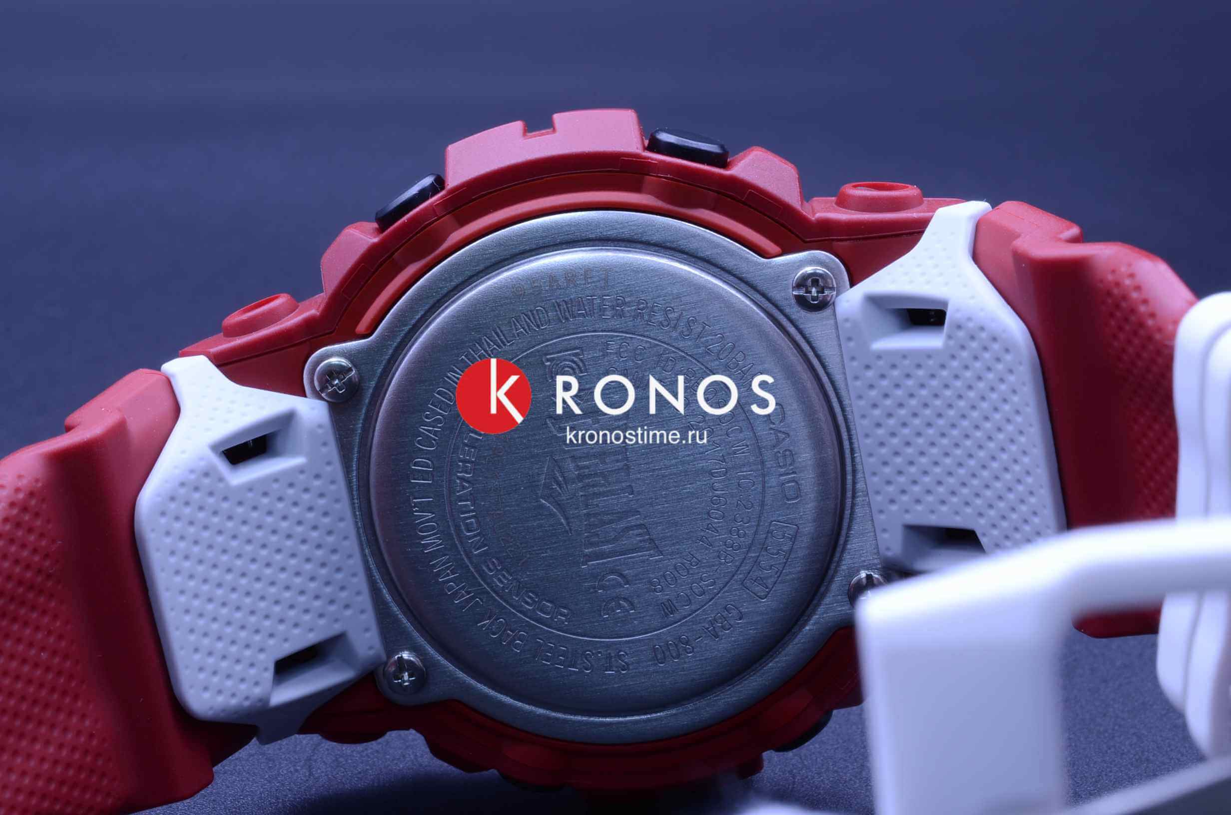 Внешний вид напоминает о боксерских перчатках. Ярко-красный аксессуар подходит для людей, которые следят за здоровьем и регулярно посещают тренировки. Этому способствует шагомер со звуковым напоминанием об отсутствии активности и технология BluetoothBluetoothСовременная технология, позволяющая синхронизировать часы с телефоном и переносить данные. Часы с Bluetooth расширяют возможности вашего смартфона и делают его использование ещё более удобным. с низким потреблением энергии. Часы синхронизируются с приложением G-SHOCK Connected Phone, в котором можно установить ежедневную норму шагов, рассчитать сожжённые калории. Японский кварцевый механизм получает питание от аккумулятора, рассчитанного на 2 года службы. Противоударный корпусУдаропрочный корпусМеханизм заключён в корпус, выполненный из современных материалов, устойчивых к ударам, механическим повреждениям и падению с высоты: инновационный пластик, карбон, нержавеющая сталь, титан. из пластика. Функция перемещения стрелок для лёгкого доступа к данным на цифровых дисплеях. Включение и выключение звука кнопок. Полимерный ремешок. Минеральное стекло. Водонепроницаемость 200 метров. Автоматическая светодиодная подсветкаСветодиодная подсветкаСветодиодная или LED-подсветка обеспечивает появление яркого холодного свечения за счёт LED-элементов - маленьких лампочек. Они потребляют минимальное количество энергии, чаще всего можно встретить 1 светодиод, в нижней части циферблата., стрелки с люминесцентным покрытием NeobriteПодсветка NeobriteИспользование светонакопительных составов на основе сульфида цинка или алюмината стронция, яркий свет можно наблюдать на протяжении 6-10 часов после «зарядки» часов около источника света.. Возможности: секундомер с памятью на 200 кругов, мировое времяМировое время Полезное часовое усложнение, отображающее время в основных городах и известных областях по всему миру, оно связано с часовыми поясами, удобно для путешественников и бизнесменов. , таймер обратного отсчёта, 5 будильников, календарь до 2099 года, хронографХронографФункция позволяет измерять отрезки времени с особой точностью: часы, минуты, секунды. Верным признаком хронографа является наличие на циферблате 3 дополнительных окошек-счётчиков.. Габариты: 54,1 x 48,6 x 15,5 мм.