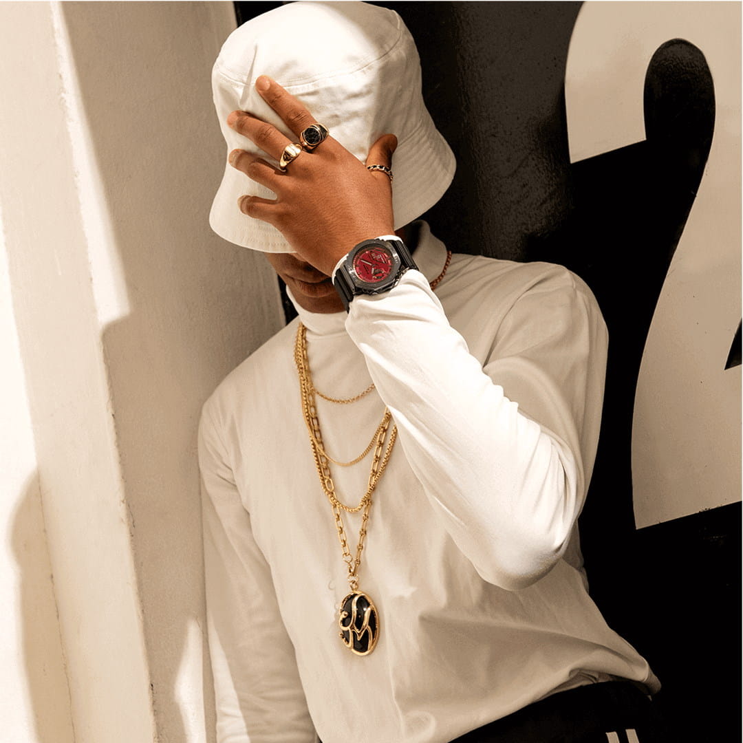 Японские мужские часы-хронографХронографФункция позволяет измерять отрезки времени с особой точностью: часы, минуты, секунды. Верным признаком хронографа является наличие на циферблате 3 дополнительных окошек-счётчиков. Casio G-Shock GM-2100B-4A из коллекции G-Shock. Минеральное стеклоМинеральное стеклоМинеральное стекло представляет собой искусственно выращенный минерал кварца. Такое стекло отличается особой устойчивостью к повреждениям и царапинам. Уступает по некоторым качествам сапфировому стеклу. устойчивое к появлению царапин, обладающее высокой прозрачностью. Ударопрочный корпусУдаропрочный корпусМеханизм заключён в корпус, выполненный из современных материалов, устойчивых к ударам, механическим повреждениям и падению с высоты: инновационный пластик, карбон, нержавеющая сталь, титан. из стали с IP-покрытиемIP-покрытиеМетод ионного напыления. Демонстрирует повышенную устойчивость к истиранию, окислению и химическим веществам. Под воздействием высокого давления и температуры около 1500°C молекулы металла надёжно соединяются с частицами корпуса часов. защищает механизм от ударов и вибрации. Светодиодная подсветкаСветодиодная подсветкаСветодиодная или LED-подсветка обеспечивает появление яркого холодного свечения за счёт LED-элементов - маленьких лампочек. Они потребляют минимальное количество энергии, чаще всего можно встретить 1 светодиод, в нижней части циферблата. освещает весь циферблат. Мировое времяМировое время Полезное часовое усложнение, отображающее время в основных городах и известных областях по всему миру, оно связано с часовыми поясами, удобно для путешественников и бизнесменов. – 48 городов (29 часовых поясов). СекундомерСекундомерСекундоме́р — прибор, способный измерять интервалы времени с точностью до долей секунды. с точностью измерения 1/100 секунды и измерением до 23 часов 59 минут 59,99 cек. ТаймерТаймерОтсчитывает секунды в обратном направлении в заданном интервале времени. обратного отсчета (диапазон времени 24 часа), автоматический календарь, 12/24 отображение времени. 5 будильниковБудильникБуди́льник — часы, в заданный момент времени подающие звуковой, световой и/или в редких случаях другой сигнал., один с функцией Snooze, ежечасный сигнал. Класс водозащиты: 200 метров, позволит плавать, нырять и заниматься другими водными видами спорта. Ремешок из полимерного материала на стандартной застежке.