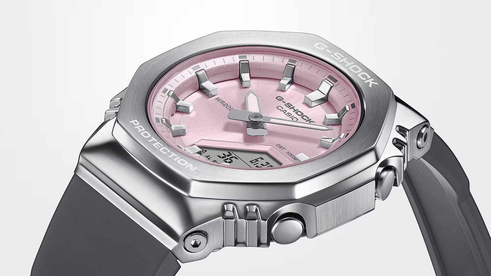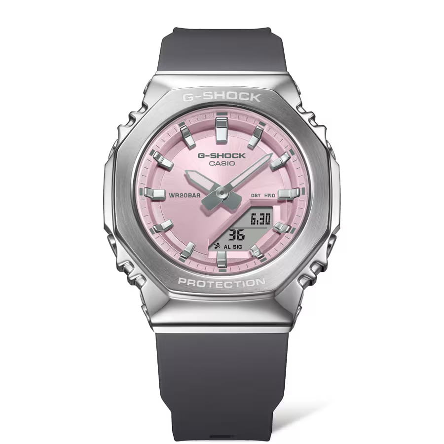 Женские кварцевые часы Casio G-Shock GM-S2110-4A. Корпус часов изготовлен из стали и карбона. Стрелки с люминесцентным покрытиемЛюминесцентное покрытиеПозволяет считывать показания времени в темноте. Производители наносят на стрелки, часовые индексы, безель или поверхность циферблата светонакопительный состав, дающий холодное свечение.. Водозащита: 200 метров, позволит плавать, нырять и заниматься другими водными видами спорта. Минеральное стеклоМинеральное стеклоМинеральное стекло представляет собой искусственно выращенный минерал кварца. Такое стекло отличается особой устойчивостью к повреждениям и царапинам. Уступает по некоторым качествам сапфировому стеклу. устойчивое к появлению царапин, обладающее высокой прозрачностью. Пластиковый ремешок. Срок жизни батареи 3 года.