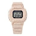 Японские женские часы DW-5600TLS-8 из коллекции G-Shock. Минеральное стеклоМинеральное стеклоМинеральное стекло представляет собой искусственно выращенный минерал кварца. Такое стекло отличается особой устойчивостью к повреждениям и царапинам. Уступает по некоторым качествам сапфировому стеклу. устойчивое к появлению царапин, обладающее высокой прозрачностью. Крепкий и удобный ремешок из полимерного материала. Электролюминесцентная подсветкаЭлектролюминесцентная подсветкаЭлектролюминесцентная панель устанавливается под ЖК-экраном часов, при нажатии кнопки электричество преобразуется в свет за счёт подачи напряжения на атомы фосфора, такой тип подсветки позволяет освещать весь циферблат.. Сохранение водонепроницаемости до 20 бар. Таймер обратного отсчёта с автоповтором, хронографХронографФункция позволяет измерять отрезки времени с особой точностью: часы, минуты, секунды. Верным признаком хронографа является наличие на циферблате 3 дополнительных окошек-счётчиков., будильник, автоматический календарь, мировое времяМировое время Полезное часовое усложнение, отображающее время в основных городах и известных областях по всему миру, оно связано с часовыми поясами, удобно для путешественников и бизнесменов. , секундомер.