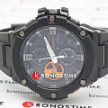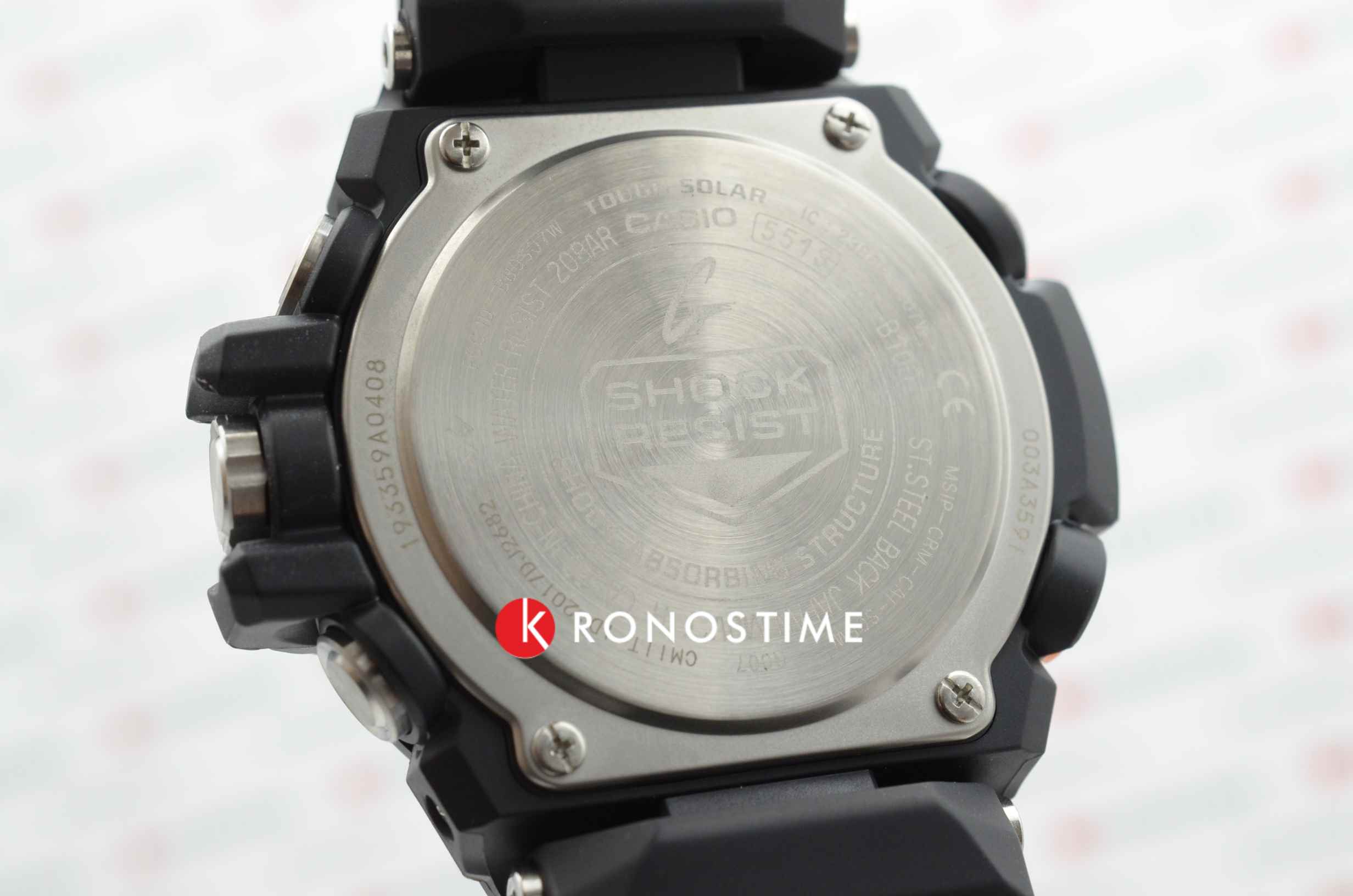Наручные часы выпущены в брутальном, слегка агрессивном дизайне. Они оформлены в чёрном цвете, ярким элементом стал оранжевый счётчик на метке 9 часов, имитирующий турбину двигателя самолёта. Окошко предназначено для контроля уровня заряда батарейки, чем больше цвета видно, тем выше необходимость поставить часы на подзарядку. Модель серии G-Steel оснащена японским кварцевым механизмом, получаемым энергию для работы от источников света. Так реализуется технология . Аксессуар наделён противоударным корпусомУдаропрочный корпусМеханизм заключён в корпус, выполненный из современных материалов, устойчивых к ударам, механическим повреждениям и падению с высоты: инновационный пластик, карбон, нержавеющая сталь, титан. из полимера и стали 316L, что позволяет усилить конструкцию. На стрелки нанесено люминесцентное покрытиеЛюминесцентное покрытиеПозволяет считывать показания времени в темноте. Производители наносят на стрелки, часовые индексы, безель или поверхность циферблата светонакопительный состав, дающий холодное свечение., аналоговый циферблат подсвечивается светодиодомСветодиодная подсветкаСветодиодная или LED-подсветка обеспечивает появление яркого холодного свечения за счёт LED-элементов - маленьких лампочек. Они потребляют минимальное количество энергии, чаще всего можно встретить 1 светодиод, в нижней части циферблата.. Синхронизация со смартфоном BluetoothBluetoothСовременная технология, позволяющая синхронизировать часы с телефоном и переносить данные. Часы с Bluetooth расширяют возможности вашего смартфона и делают его использование ещё более удобным. позволяет устанавливать точное время, настраивать параметры будильника, мирового времениМировое время Полезное часовое усложнение, отображающее время в основных городах и известных областях по всему миру, оно связано с часовыми поясами, удобно для путешественников и бизнесменов. . Функции: ежедневный будильник, секундомер, хронографХронографФункция позволяет измерять отрезки времени с особой точностью: часы, минуты, секунды. Верным признаком хронографа является наличие на циферблате 3 дополнительных окошек-счётчиков., таймер, вечный календарьВечный календарьКлассическое часовое усложнение, представляющее собой календарь, рассчитанный на несколько лет вперёд (стандартно – до 2099 года). Определяет текущую дату, день недели, месяц.. Габариты: 58,1 x 53,8 x 14,1 мм.