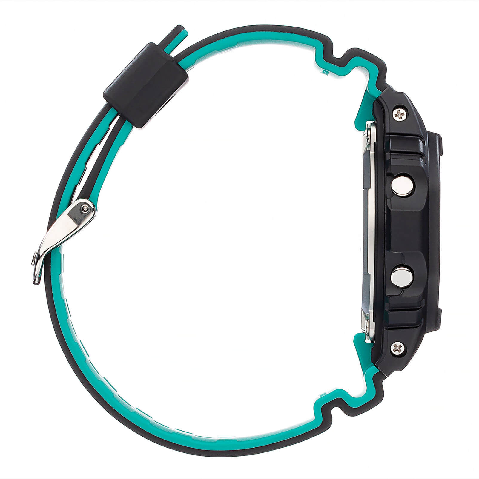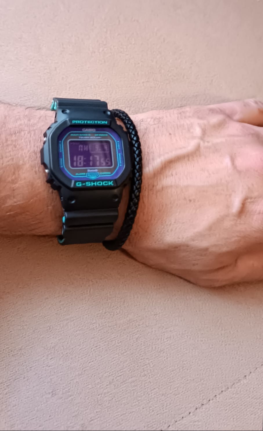 Модель сделана в цветовом оформлении духа 90-х, она имеет классический для часов Casio 8-угольный противоударный корпусУдаропрочный корпусМеханизм заключён в корпус, выполненный из современных материалов, устойчивых к ударам, механическим повреждениям и падению с высоты: инновационный пластик, карбон, нержавеющая сталь, титан., благодаря которому дизайн приобретает узнаваемые черты. Аксессуар выполнен из полимерного материала, устойчивого к ударам, повреждениям, вибрации, падению. Синхронизация времени и настройка функций осуществляется с помощью технологии BluetoothBluetoothСовременная технология, позволяющая синхронизировать часы с телефоном и переносить данные. Часы с Bluetooth расширяют возможности вашего смартфона и делают его использование ещё более удобным., управление возможностями происходит в приложении на телефоне G-Shock Connected. Японский кварцевый калибр. Питание от солнечного света . Автоматический переход в режим сохранения энергии для экономии расхода батареи. Минеральное стекло. Электролюминесцентная подсветкаЭлектролюминесцентная подсветкаЭлектролюминесцентная панель устанавливается под ЖК-экраном часов, при нажатии кнопки электричество преобразуется в свет за счёт подачи напряжения на атомы фосфора, такой тип подсветки позволяет освещать весь циферблат.. Водонепроницаемость до 200 метров. Секундомер, коррекция текущего времени радиосигналом, таймер, хронографХронографФункция позволяет измерять отрезки времени с особой точностью: часы, минуты, секунды. Верным признаком хронографа является наличие на циферблате 3 дополнительных окошек-счётчиков., будильник, мировое времяМировое время Полезное часовое усложнение, отображающее время в основных городах и известных областях по всему миру, оно связано с часовыми поясами, удобно для путешественников и бизнесменов. , календарь. Габариты: 48,9 x 42,8 x 13,4 мм.