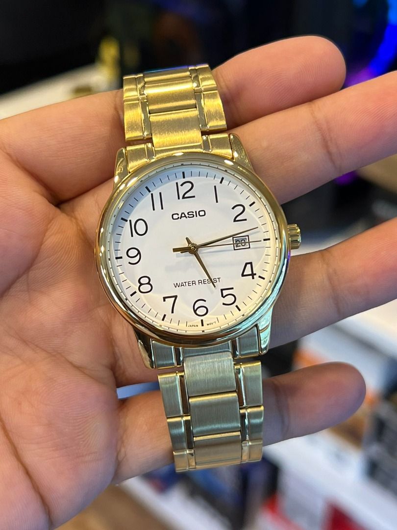 Японские мужские наручные часы с минеральным стекломМинеральное стеклоМинеральное стекло представляет собой искусственно выращенный минерал кварца. Такое стекло отличается особой устойчивостью к повреждениям и царапинам. Уступает по некоторым качествам сапфировому стеклу. Casio Collection MTP-V002G-7B2, кварцевый механизм с высокой точностью. Класс водозащиты: 30 метров, позволит защитить корпус от случайных брызг или капель дождя. Корпус часов изготовлен из стали с IP-покрытиемIP-покрытиеМетод ионного напыления. Демонстрирует повышенную устойчивость к истиранию, окислению и химическим веществам. Под воздействием высокого давления и температуры около 1500°C молекулы металла надёжно соединяются с частицами корпуса часов.. Стальной браслет на раскладной застёжкеРаскладная застёжкаТакой тип застёжки используется только на браслетах из металла. Она никогда не раскрывается полностью, происходит разделение на 2 и более частей. Раскладывающая застёжка снизит вероятность потери часов к минимуму. с IP-покрытиемIP-покрытиеМетод ионного напыления. Демонстрирует повышенную устойчивость к истиранию, окислению и химическим веществам. Под воздействием высокого давления и температуры около 1500°C молекулы металла надёжно соединяются с частицами корпуса часов.. Окошко даты находится в положении 3 часа.