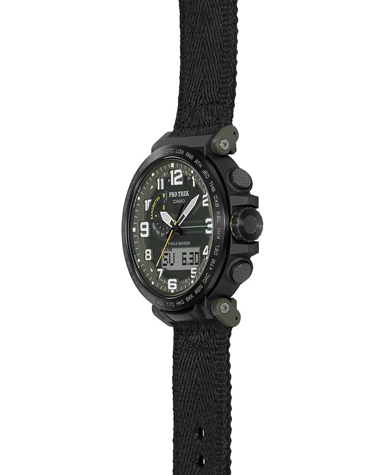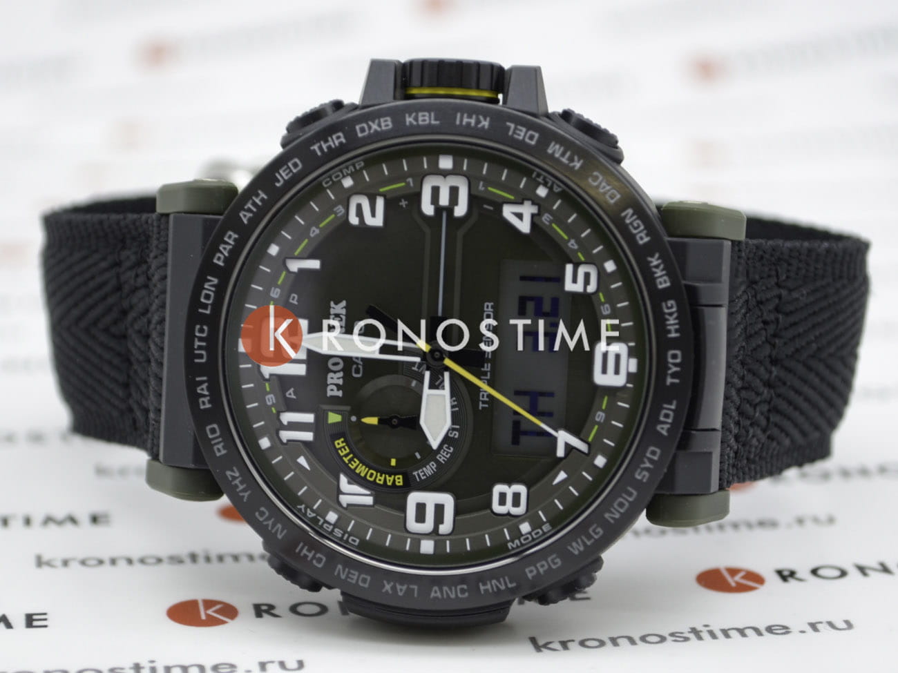 Любое ваше путешествие выйдет на новый уровень благодаря этим часам из коллекции Pro Trek. Casio Pro Trek PRG-601YB-3 для активного отдыха. Корпус и ремешок выполнены из биопластика, который изготавливается из возобновляемых органических ресурсов. Питание от солнечной энергии Tough SolarTough SolarТехнология основана на подзарядке аккумулятора от источника солнечного света, специальная панель улавливает солнечные лучи и преобразует их в энергию для работы часов. Достаточно пары минут нахождения на солнце для функционирования часов в течении суток. - солнечные батарейки большой мощности, индикатор заряда батареи. Функция автоматического сохранения энергии. Время работы аккумулятора без подзарядки приблизительно 7 месяцев, при включенной функции сохранения энергии приблизительно 25 месяцев. Модуль часов рассчитан на работу при низких температурах до -10°С/14°F. Двойная подcветка: циферблат и ЖК-дисплеи подсвечиваются светодиодом, благодаря наличию функции задержки, после отпускания кнопки освещение горит еще несколько секунд. Настраиваемое послесвечение 1,5 или 3сек. Цвет подсветки: белый. Необритовое покрытиеПодсветка NeobriteИспользование светонакопительных составов на основе сульфида цинка или алюмината стронция, яркий свет можно наблюдать на протяжении 6-10 часов после «зарядки» часов около источника света. обеспечивает длительное послесвечение в темноте даже после кратковременного нахождения на свету. 12-ти и 24-х часовой формат времени. СекундомерСекундомерСекундоме́р — прибор, способный измерять интервалы времени с точностью до долей секунды. с точностью показаний 1/100с и временем измерения 24ч. Сплит-хронографСплит-хронографИспользуется для измерения продолжительности нескольких временных отрезков, начинающихся одновременно, а заканчивающихся в разное время.. ТаймерТаймерОтсчитывает секунды в обратном направлении в заданном интервале времени. обратного отсчета от 1с до 1ч. Мировое времяМировое время Полезное часовое усложнение, отображающее время в основных городах и известных областях по всему миру, оно связано с часовыми поясами, удобно для путешественников и бизнесменов. – 29 городов (29 часовых поясов), всемирное координированное время (UTC). Функция включения/отключения летнего времени. Функция автоматической коррекции положения стрелок проверяет положение стрелок каждый час и корректирует его в случае необходимости. Технология Triple Sensor позволяет точно и легко определять сторону света, температуру и атмосферное давление. Термометр от -10° до +60°С с точностью 0,1°C. Барометр - измерение атмосферного давления от 260 до 1100 гПа (от 195 до 825 мм рт. ст.). Встроенный цифровой компас. Диапазон измерения от 0° до 359° с точностью 1°. Высотомер - встроенный датчик барометрического давления с возможностью вывода результатов в единицах высоты над уровнем моря (от -700 до 10000 метров). График набора высоты. Хранение до 30 записей о высотных точках рельефа местности - измеренной абсолютной высоты, даты и времени. Система Smart Access с помощью электронной заводной головки обеспечивает простой и удобный доступ ко всем важным функциям часов. Нажатие или поворот заводной головки позволяет переключаться между различными режимами и активировать будильникБудильникБуди́льник — часы, в заданный момент времени подающие звуковой, световой и/или в редких случаях друго