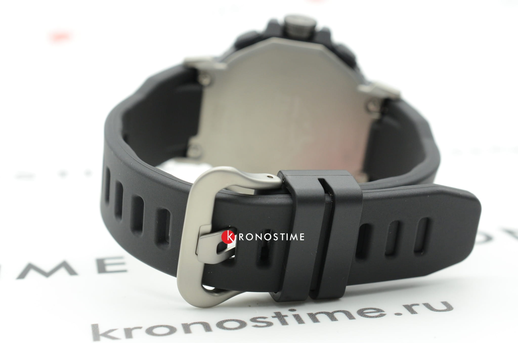 Ударопрочный корпусУдаропрочный корпусМеханизм заключён в корпус, выполненный из современных материалов, устойчивых к ударам, механическим повреждениям и падению с высоты: инновационный пластик, карбон, нержавеющая сталь, титан. из пластика надёжно защищает японский кварцевый механизм и внутреннюю «начинку», объединяющую полезные функции. Это барометр, компас, таймер, хронографХронографФункция позволяет измерять отрезки времени с особой точностью: часы, минуты, секунды. Верным признаком хронографа является наличие на циферблате 3 дополнительных окошек-счётчиков., термометр -10°C /+60°C, высотомер с графиком набора высоты, секундомер, мировое времяМировое время Полезное часовое усложнение, отображающее время в основных городах и известных областях по всему миру, оно связано с часовыми поясами, удобно для путешественников и бизнесменов. – 29 часовых поясов, 5 будильников, автоматический календарь, коррекция времени с помощью радиосигнала. Солнечная батарея повышенной мощности. Стальной безельБезельВнешний ободок, закрепляющий стекло. В спортивных часах так называется поворотное кольцо с делениями на циферблате, выполняет роль таймера – замеряет отрезки времени на шкале. Неподвижный безель – элемент декора. Однонаправленно вращающийся безель на дайверских часах позволяет фиксировать моменты погружения и выныривания на поверхность.. Закаленное минеральное стекло. Защищённая заводная головка. Класс водозащиты WR 100. Двойная светодиодная подсветкаСветодиодная подсветкаСветодиодная или LED-подсветка обеспечивает появление яркого холодного свечения за счёт LED-элементов - маленьких лампочек. Они потребляют минимальное количество энергии, чаще всего можно встретить 1 светодиод, в нижней части циферблата. дисплея и циферблата. Люминесцентная подсветка NeobriteПодсветка NeobriteИспользование светонакопительных составов на основе сульфида цинка или алюмината стронция, яркий свет можно наблюдать на протяжении 6-10 часов после «зарядки» часов около источника света. для стрелок. Гибкий полимерный браслет. Габариты: 50,5 x 47,2 x 13,3 мм.