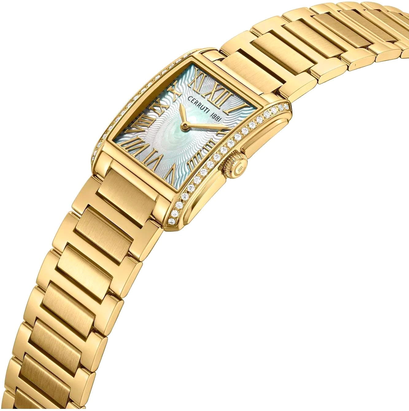 Женские кварцевые часы Cerruti 1881 Rendena CIWLG0086102 — изысканная итальянская элегантность в миниатюрном прямоугольном корпусе. Корпус из нержавеющей стали 316L с PVD-покрытиемPVDУльтратонкое покрытие наносится в технике вакуумного напыления, сочетает в себе нитрид титана особой прочности со слоем золота или оксида хрома. Несёт в себе декоративную или защитную функцию. украшен кристаллами, размером 24,5 × 32,5 мм. Циферблат — белый перламутровый с узором в виде волн и римскими цифрами. Стекло — минеральноеМинеральное стеклоМинеральное стекло представляет собой искусственно выращенный минерал кварца. Такое стекло отличается особой устойчивостью к повреждениям и царапинам. Уступает по некоторым качествам сапфировому стеклу. с сапфировым покрытием. Браслет — стальной с PVD-покрытиемPVDУльтратонкое покрытие наносится в технике вакуумного напыления, сочетает в себе нитрид титана особой прочности со слоем золота или оксида хрома. Несёт в себе декоративную или защитную функцию. на застёжке «бабочка» с кнопкамиЗастёжка "бабочка"Такой вид застёжки дополняется предохранителями, помогающими избежать случайного раскрытия браслета. Обладают изящным исполнением. . Водонепроницаемость 50 м. Идеальный выбор для тех, кто ценит итальянский дизайн и утончённую женственность.