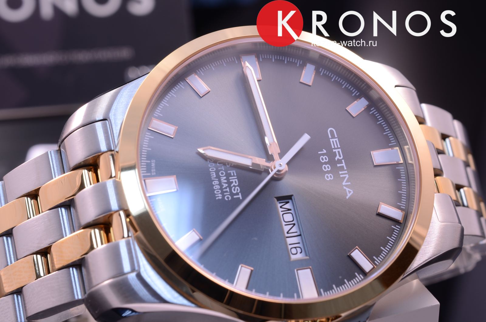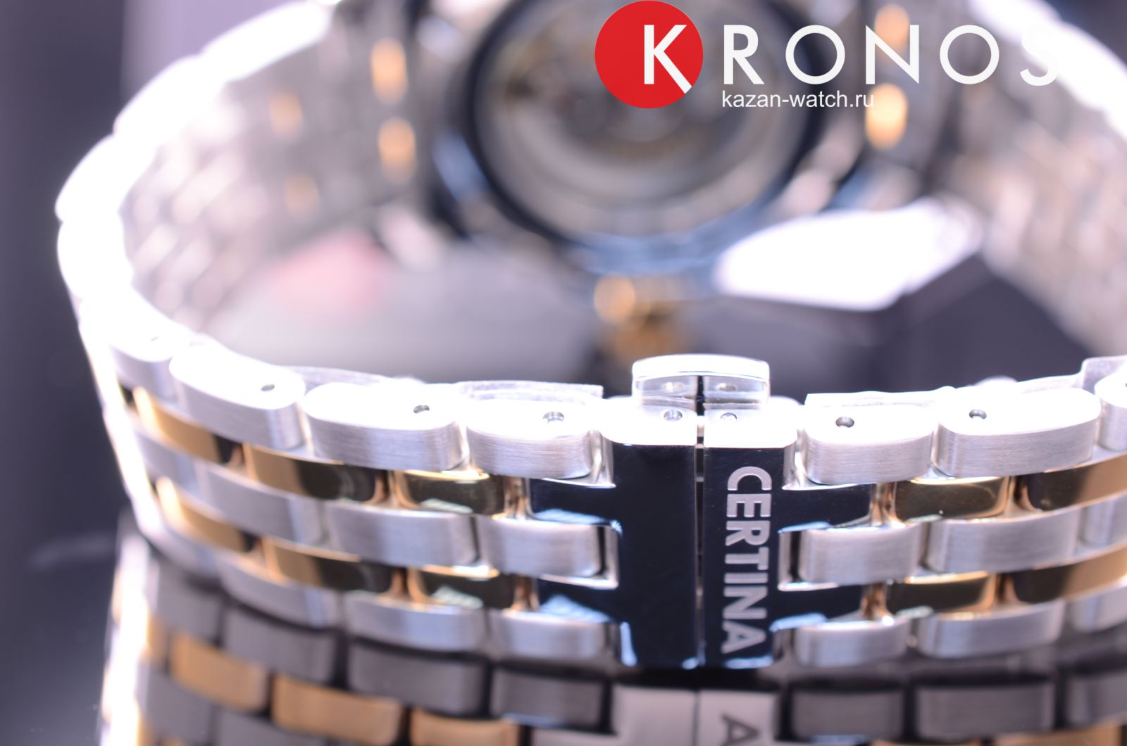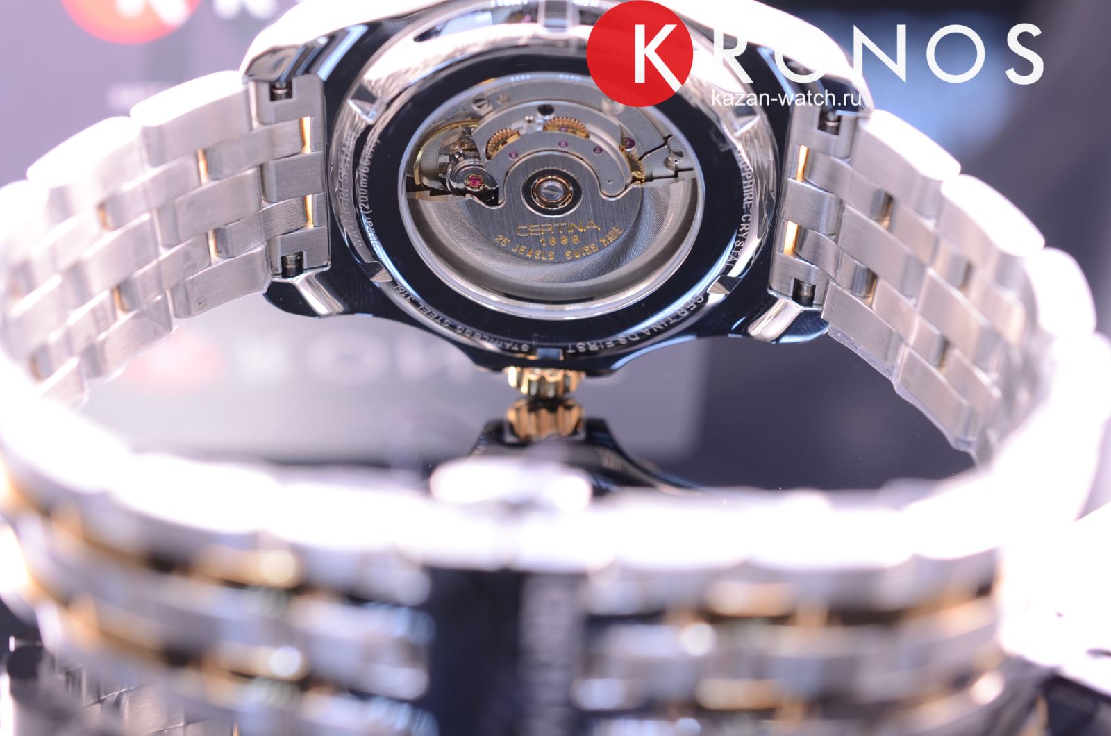 Часы Certina – это воплощение высочайшей точности и надежности часов, система DS расшифровывается Double Security; "двойная надежность". Беспрекословная точность и надежность, использование сложных технологий, инновационный подход в сочетании с традициями создания хронографов, которые марка пронесла через десятилетия, – все это позволяет компании предоставлять элитные, роскошные и стильные часы. На обратной стороне нанесено изображение черепахи в знак долговечности. Задняя крышка с повышенной прочностью, два кольца с уплотнением на заводной головке.