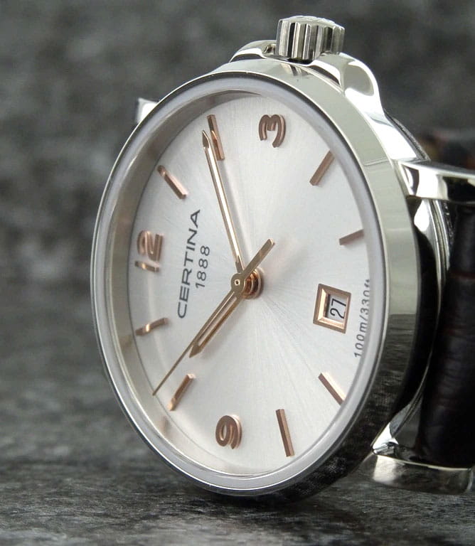 Женские швейцарские часы с сапфировым стекломСапфировое стеклоПрочный и надёжный материал из кристалла сапфира синтетического происхождения, характеризующийся особой твёрдостью и устойчивостью к царапинам и повреждениям. Certina DS Caimano C017.210.16.037.01 привлекает внимание окружающих приятным сочетанием простоты и кокетства. DS Caimano. Водонепроницаемые женские часы. Круглый стальной корпус. Циферблат выполнен по технологии Sunray (солнечные лучи). Узкие заостренные прямоугольные стрелки в стиле Baton. Метки в виде штрихов, 3, 6 и 12 часовые метки в виде арабских цифр.
