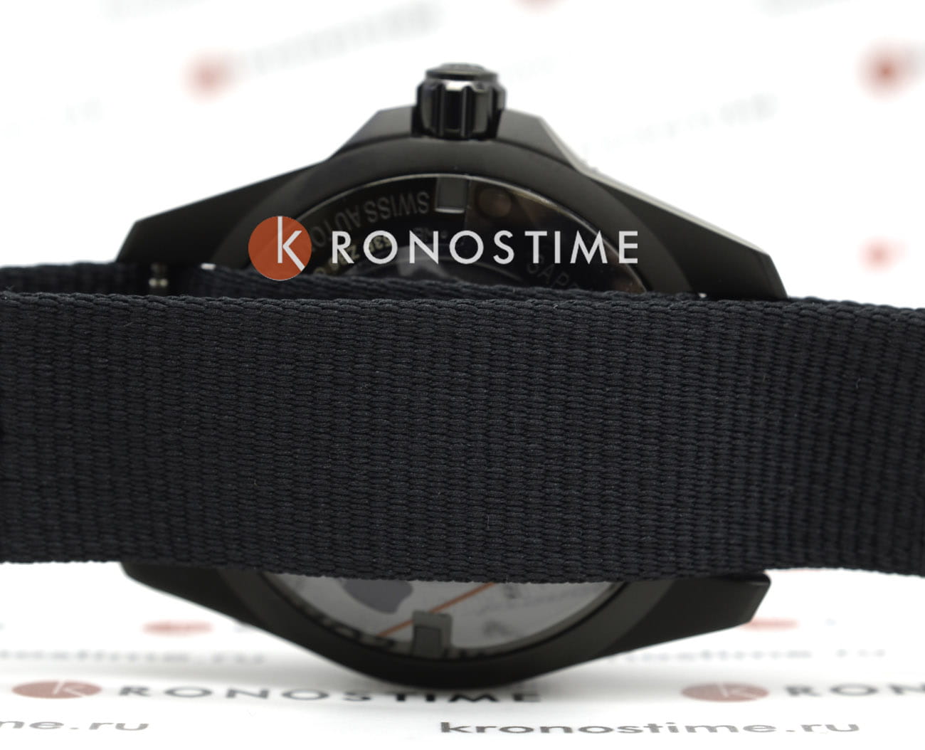 Корпус часов выполнен из нержавеющей стали, а безельБезельВнешний ободок, закрепляющий стекло. В спортивных часах так называется поворотное кольцо с делениями на циферблате, выполняет роль таймера – замеряет отрезки времени на шкале. Неподвижный безель – элемент декора. Однонаправленно вращающийся безель на дайверских часах позволяет фиксировать моменты погружения и выныривания на поверхность. изготовлен из стали с IP-покрытиемIP-покрытиеМетод ионного напыления. Демонстрирует повышенную устойчивость к истиранию, окислению и химическим веществам. Под воздействием высокого давления и температуры около 1500°C молекулы металла надёжно соединяются с частицами корпуса часов. и сапфировым стеклом. Стрелки и метки с люминесцентным покрытиемЛюминесцентное покрытиеПозволяет считывать показания времени в темноте. Производители наносят на стрелки, часовые индексы, безель или поверхность циферблата светонакопительный состав, дающий холодное свечение. придают часам особую привлекательность и читаемость в условиях низкой освещённости. Окошко даты находится в положении 3 часа.