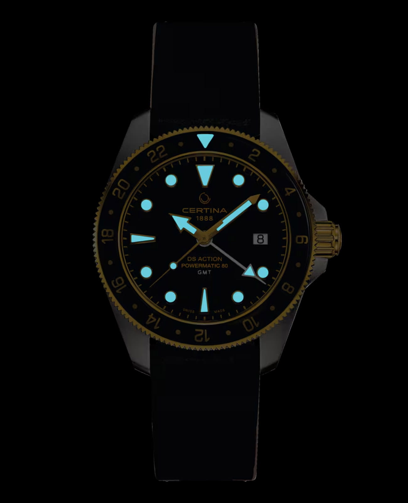 Мужские швейцарские механические часы с автоподзаводом Certina DS Action Diver C032.929.26.051.00, механический механизм (автоматический калибр) с высокой точностью. Сапфировое стеклоСапфировое стеклоПрочный и надёжный материал из кристалла сапфира синтетического происхождения, характеризующийся особой твёрдостью и устойчивостью к царапинам и повреждениям. устойчивое к появлению царапин, обладающее высокой прозрачностью. Корпус изготовлен из нержавеющей стали.  БезельБезельВнешний ободок, закрепляющий стекло. В спортивных часах так называется поворотное кольцо с делениями на циферблате, выполняет роль таймера – замеряет отрезки времени на шкале. Неподвижный безель – элемент декора. Однонаправленно вращающийся безель на дайверских часах позволяет фиксировать моменты погружения и выныривания на поверхность. из стали с IP-покрытиемIP-покрытиеМетод ионного напыления. Демонстрирует повышенную устойчивость к истиранию, окислению и химическим веществам. Под воздействием высокого давления и температуры около 1500°C молекулы металла надёжно соединяются с частицами корпуса часов.  и сапфировым стеклом. Стрелки и метки с люминесцентным покрытиемЛюминесцентное покрытиеПозволяет считывать показания времени в темноте. Производители наносят на стрелки, часовые индексы, безель или поверхность циферблата светонакопительный состав, дающий холодное свечение.. Окошко даты находится в положении 3 часа. Класс водозащиты: 200 метров, позволит плавать, нырять и заниматься другими водными видами спорта. Кожаный ремешок на стандартной застежке.