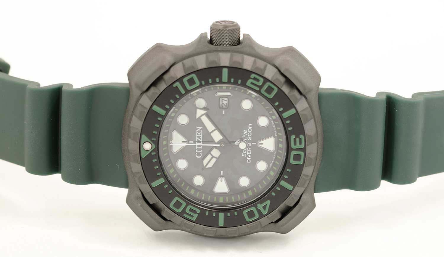 Мужские часы Citizen Promaster BN0228-06W дайверские часы станут верным спутником в вашей энергичной и спортивной жизни. Корпус из титана (Super Titanium) с DLC-покрытиемDLC-покрытиеDiamond like carbon - одно из лучших видов покрытия, представляющее собой углерод с алмазными свойствами. На поверхность материала наносятся распавшиеся молекулы углерода, превращающиеся в плёнку из алмазоподобных связей, которая перенимает твёрдость алмаза. диаметром 47,9 мм идеально сбалансирован. Минеральное стеклоМинеральное стеклоМинеральное стекло представляет собой искусственно выращенный минерал кварца. Такое стекло отличается особой устойчивостью к повреждениям и царапинам. Уступает по некоторым качествам сапфировому стеклу. обеспечивает отличную защиту циферблата от царапин. Часы работают на основе кварцевого механизма, питание от солнечной энергии, запас энергии на 180 дней. Полиуретановый ремешок на стандартной застёжке идеально дополняют дизайн часов, обеспечивая комфортное ношение. Стрелки и метки на циферблате имеют люминесцентное покрытиеЛюминесцентное покрытиеПозволяет считывать показания времени в темноте. Производители наносят на стрелки, часовые индексы, безель или поверхность циферблата светонакопительный состав, дающий холодное свечение. позволяющее легко определять время даже в темноте. Титановый безельБезельВнешний ободок, закрепляющий стекло. В спортивных часах так называется поворотное кольцо с делениями на циферблате, выполняет роль таймера – замеряет отрезки времени на шкале. Неподвижный безель – элемент декора. Однонаправленно вращающийся безель на дайверских часах позволяет фиксировать моменты погружения и выныривания на поверхность. с Duratect MRK покрытием вращается в одном направлении. Функция индикации заряда (EOL) и предотвращения перезарядки. Окошко даты находится в положении 3 часа. Часы обладают впечатляющей водонепроницаемостью до 200WR, что делает их идеальными для плавания, ныряния и погружений с аквалангом.