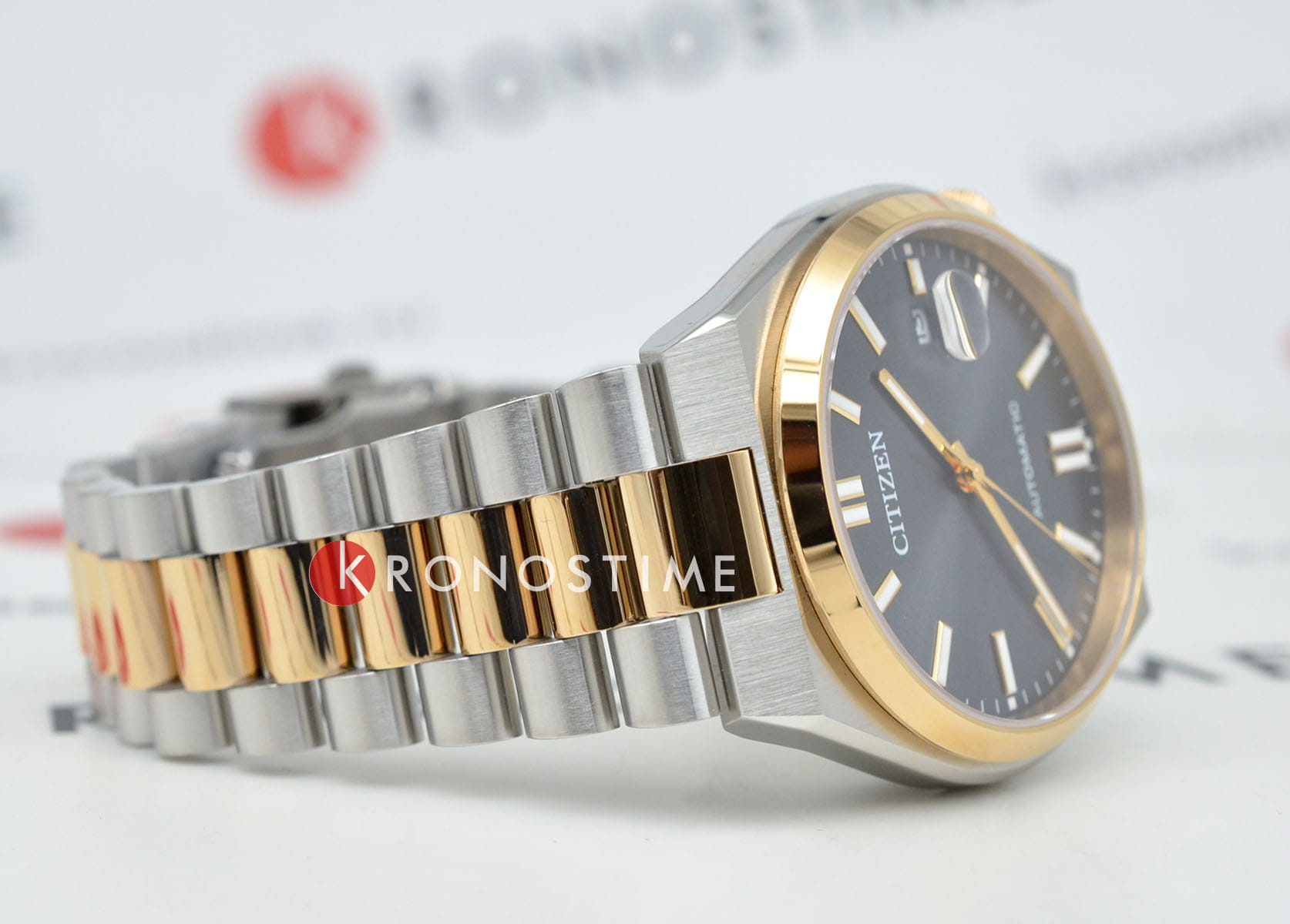 Citizen Tsuyosa NJ0154-80H - идеальное сочетание классического и современного дизайна. Корпус из нержавеющей стали диаметром 40 мм идеально сбалансирован. Сапфировое стеклоСапфировое стеклоПрочный и надёжный материал из кристалла сапфира синтетического происхождения, характеризующийся особой твёрдостью и устойчивостью к царапинам и повреждениям. с антибликовым покрытием обеспечивает отличную защиту циферблата от царапин. Механические часы с автоподзаводом. Стальной браслет на раскладной застёжкеРаскладная застёжкаТакой тип застёжки используется только на браслетах из металла. Она никогда не раскрывается полностью, происходит разделение на 2 и более частей. Раскладывающая застёжка снизит вероятность потери часов к минимуму. с частичным IP-покрытиемIP-покрытиеМетод ионного напыления. Демонстрирует повышенную устойчивость к истиранию, окислению и химическим веществам. Под воздействием высокого давления и температуры около 1500°C молекулы металла надёжно соединяются с частицами корпуса часов. идеально дополняют дизайн часов, обеспечивая комфортное ношение. Метки в виде штрихов. Окошко даты в положении 3 часа. Стрелки и метки с люминесцентным покрытиемЛюминесцентное покрытиеПозволяет считывать показания времени в темноте. Производители наносят на стрелки, часовые индексы, безель или поверхность циферблата светонакопительный состав, дающий холодное свечение.. В механизме 21 камень, частота 21600 полуколебаний в час. Запас хода 42 часа. Рифленая заводная головка находится в положении 4 часа. БезельБезельВнешний ободок, закрепляющий стекло. В спортивных часах так называется поворотное кольцо с делениями на циферблате, выполняет роль таймера – замеряет отрезки времени на шкале. Неподвижный безель – элемент декора. Однонаправленно вращающийся безель на дайверских часах позволяет фиксировать моменты погружения и выныривания на поверхность. с IP-покрытиемIP-покрытиеМетод ионного напыления. Демонстрирует повышенную устойчивость к истиранию, окислению и химическим веществам. Под воздействием высокого давления и температуры около 1500°C молекулы металла надёжно соединяются с частицами корпуса часов.. Циферблат с метками в виде штрихов выполнен по технологии Sunray (солнечные лучи). Завинчивающаяся прозрачная задняя крышка. Часы обладают водонепроницаемостью до 50WR, что делает их идеальными для повседневной носки.