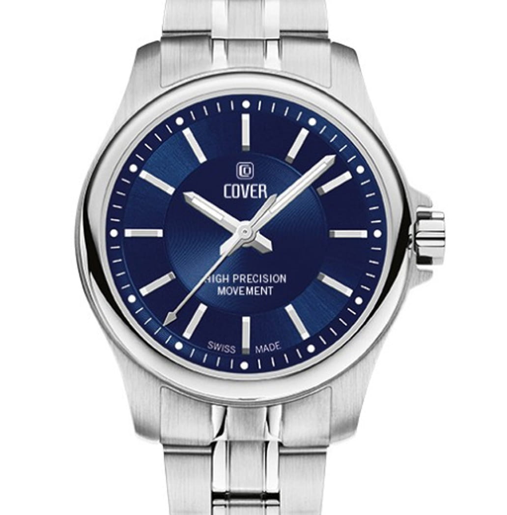 Женские наручные часы Cover CO201.03 из коллекции Marville сочетают в себе классический дизайн и высокую точность швейцарского производства. Модель обладает круглым корпусом диаметром 28 мм, изготовленным из нержавеющей стали, что придает изделию благородный внешний вид. Синий циферблат оснащен стрелками с люминесцентным покрытиемЛюминесцентное покрытиеПозволяет считывать показания времени в темноте. Производители наносят на стрелки, часовые индексы, безель или поверхность циферблата светонакопительный состав, дающий холодное свечение.. Для защиты используется сапфировое стеклоСапфировое стеклоПрочный и надёжный материал из кристалла сапфира синтетического происхождения, характеризующийся особой твёрдостью и устойчивостью к царапинам и повреждениям. с антибликовым покрытиемАнтибликовое покрытиеСлой оксида металла в 0,13-0,3 микрон, благодаря которому стекло часов не бликует и не отражает свет. Антибликовое покрытие уменьшает отражение света в 10 раз, обеспечивая отличную читаемость показателей циферблата., обеспечивающее прочную защиту от царапин и превосходную читаемость времени даже при ярком свете. Часы работают на высокоточном кварцевом механизме ETA, гарантирующем исключительную точность хода с погрешностью около 20 секунд в месяц. Браслет выполнен из нержавеющей стали и оснащен раскладной застежкойРаскладная застёжкаТакой тип застёжки используется только на браслетах из металла. Она никогда не раскрывается полностью, происходит разделение на 2 и более частей. Раскладывающая застёжка снизит вероятность потери часов к минимуму., обеспечивающей комфортное ношение и безопасность. Водонепроницаемость достигает 10 атмосфер (100 метров), что позволяет использовать их во время плавания и других водных видов спорта, однако не рекомендуется для глубоководного дайвинга. Эти швейцарские часы станут идеальным дополнением как классического, так и современного образа.